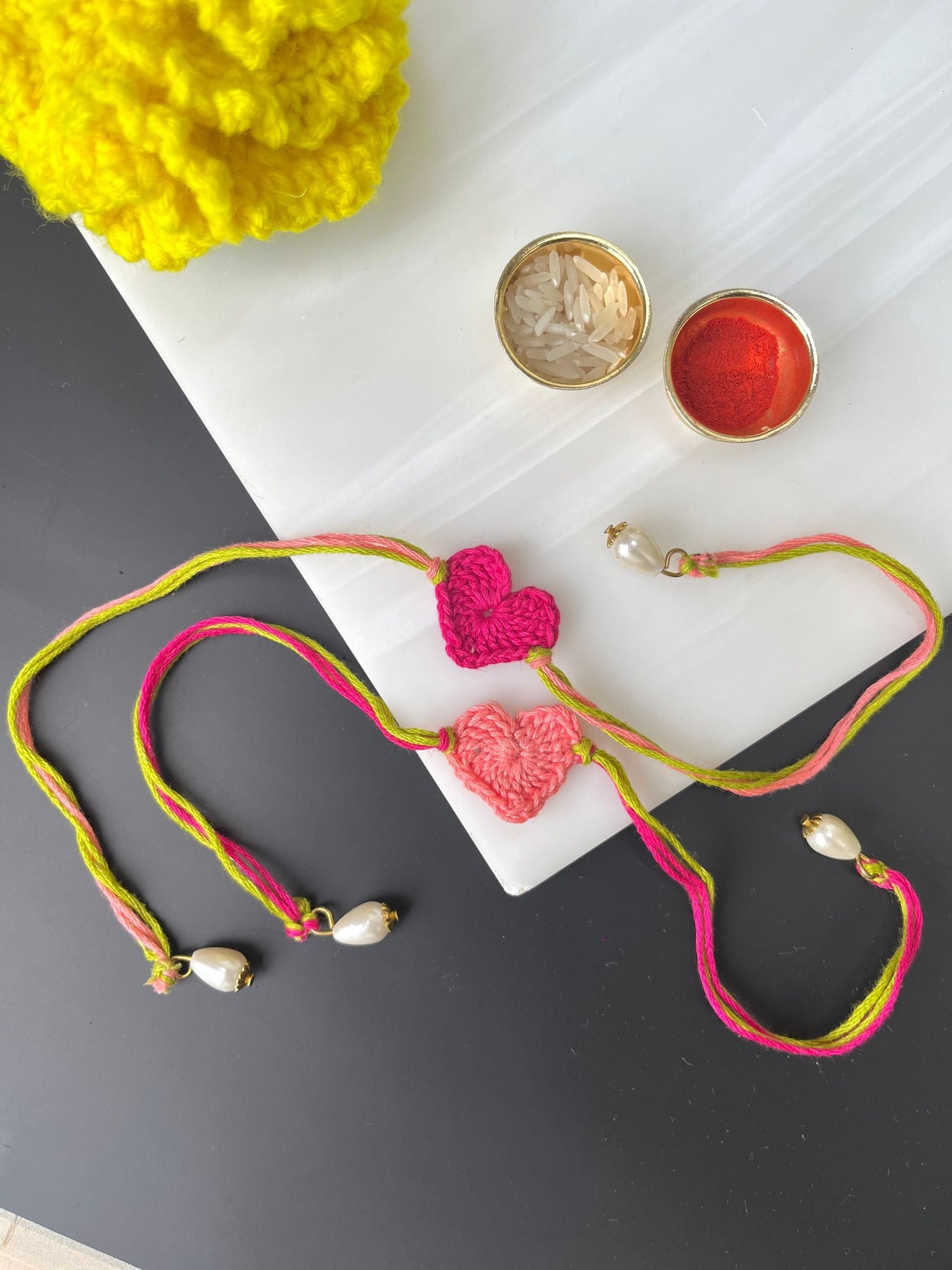 1. Ishmade’s Crochet Heart Rakhi Combo