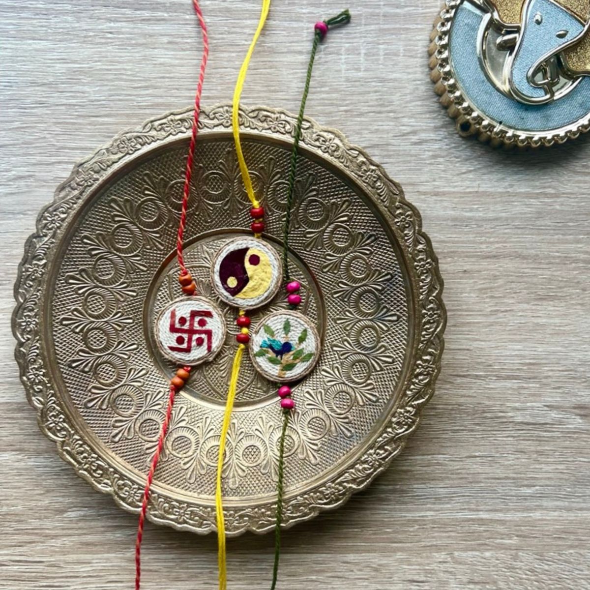 This set includes three thoughtfully designed rakhis made from natural, skin-friendly materials. Perfect for siblings who appreciate variety and tradition, while staying eco-conscious.