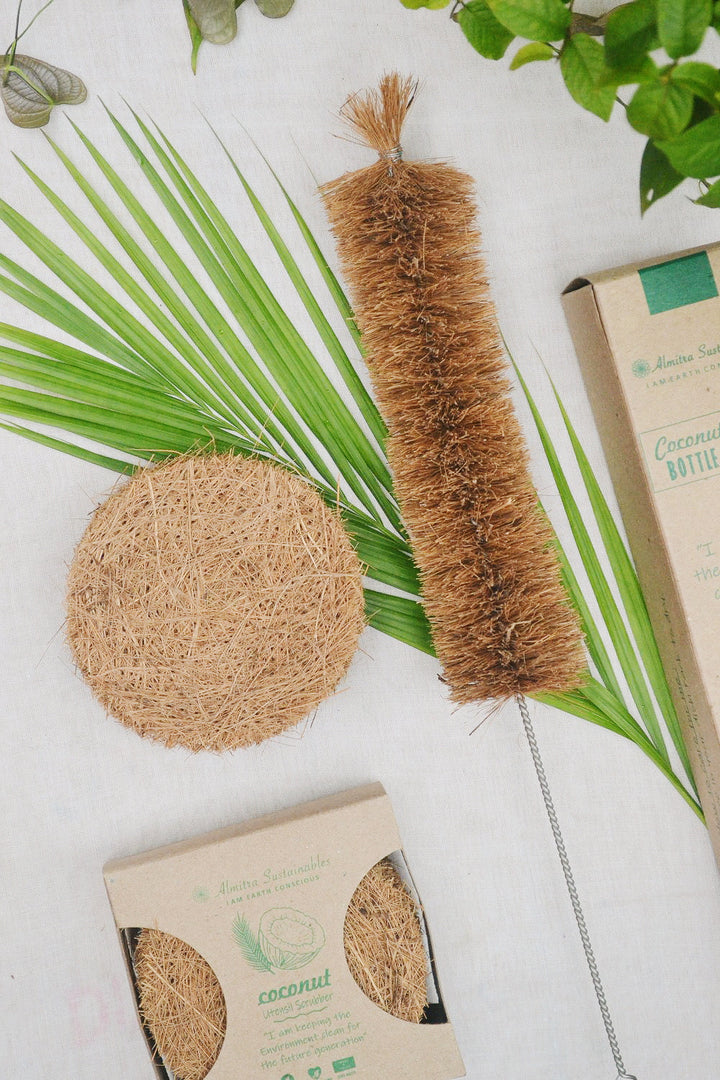Almitra Sustainables Coconut Fiber Coir Scrub (Pack of 5) and Bottle Cleaner