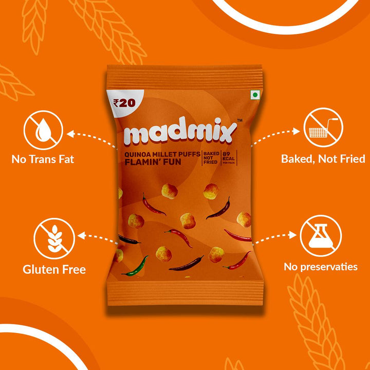 Madmix Quinoa Millet Puffs Flamin Fun Pack of 10 | 20 Grams Each