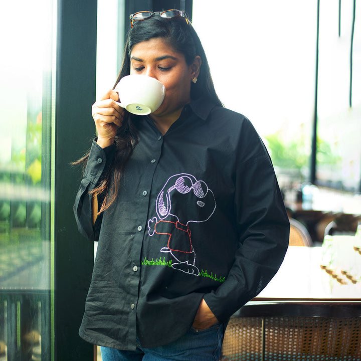 Chill Dog Embroidered Organic Cotton Women Shirt - Black