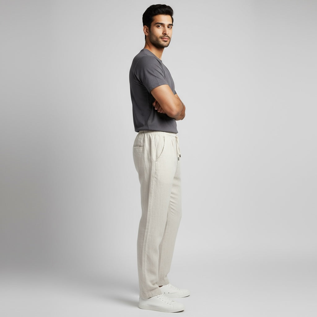 Comfort you’ll want to live in. Style that goes everywhere. Linen Pants- Male.