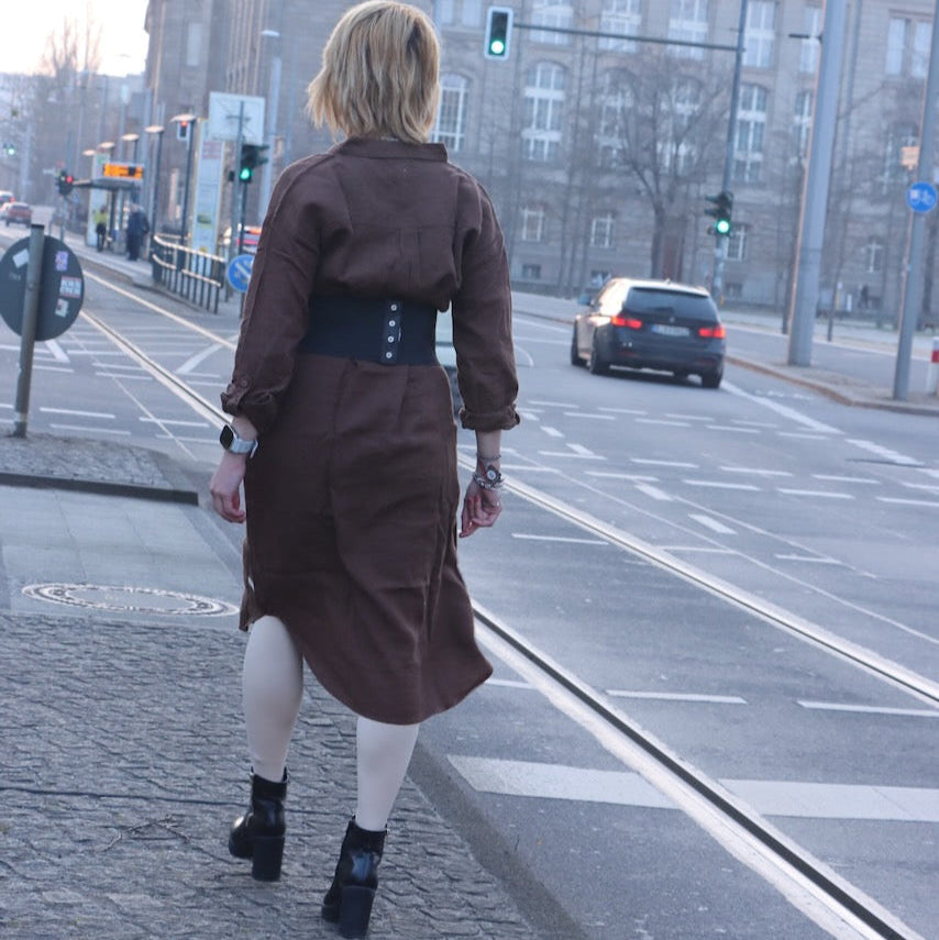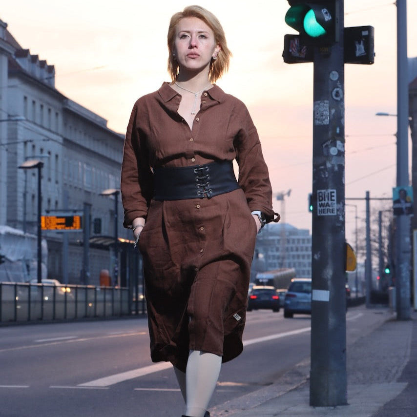 Wear it loose for a laid-back look, or belt it at the waist to create shape and structure. Whether you're out for brunch, strolling through the city, or traveling light, this dress blends comfort with quiet sophistication.