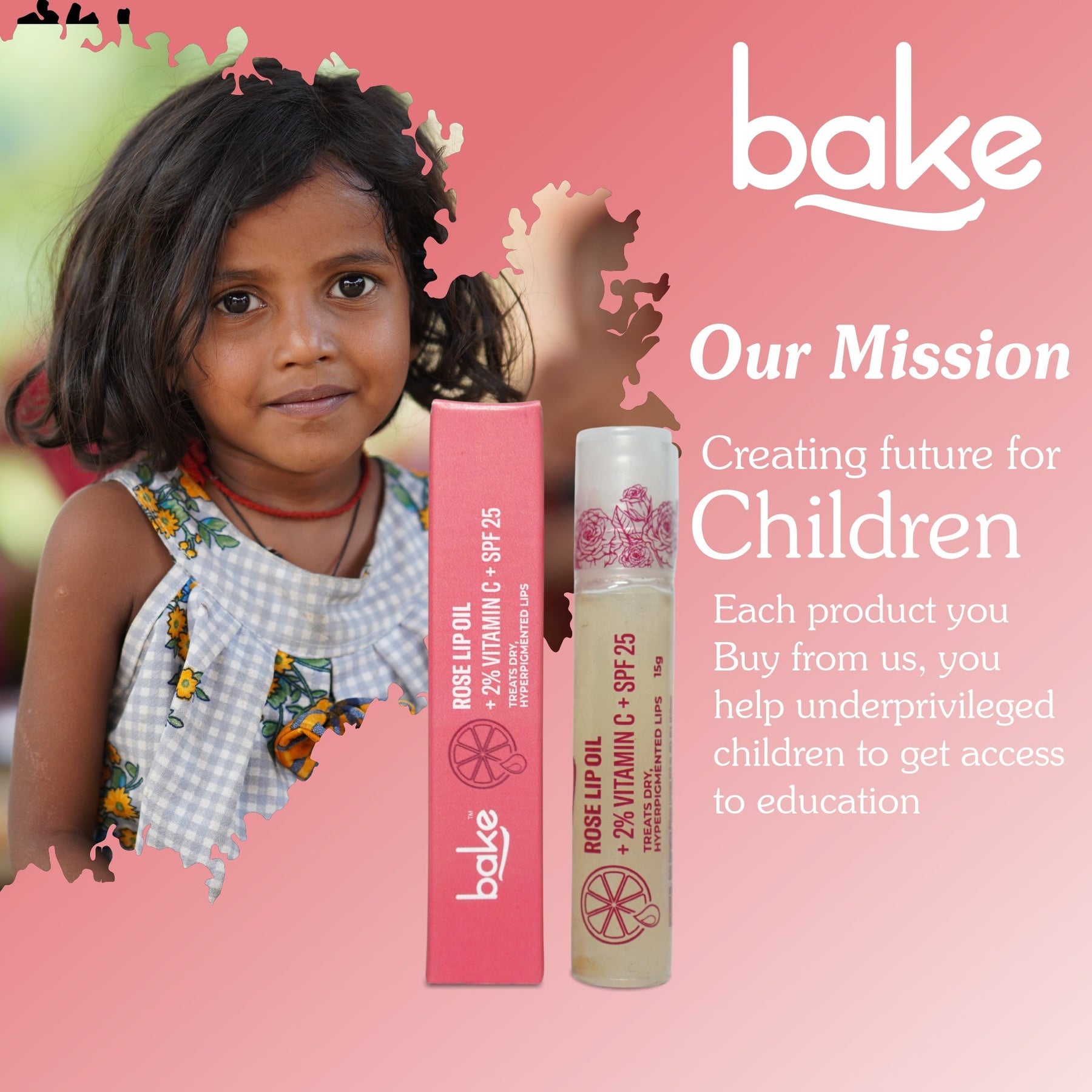 Discover the BAKE 2% Vitamin C Rose Lip Oil with SPF 25, a premium lip care solution designed to elevate your lip care routine to new heights. Enriched with nourishing Shea butter, Cocoa Butter, and potent Vitamin C, this lip oil offers a range of transformative benefits for smooth, supple, and radiant lips. Say goodbye to dry, hyperpigmented lips as the lip oil's Vitamin C brightens and revitalizes, unveiling a luminous smile you'll love. Embrace the added shield of SPF 25, protecting your lips from harmful UV rays and environmental stressors, ensuring their health and beauty are preserved. Delight your senses with the captivating aroma of vanilla, creating a pleasurable and indulgent lip care experience. With a unisex formulation, the BAKE Vitamin C Vanilla Lip Oil caters to both men and women, acknowledging the uniqueness of each individual. Travel-friendly and portable in a 15ml vial, this lip oil becomes your loyal companion wherever you go. Elevate your lip care with the BAKE 2% Vitamin C Vanilla Lip Oil and unlock the secret to irresistibly beautiful and nourished lips.