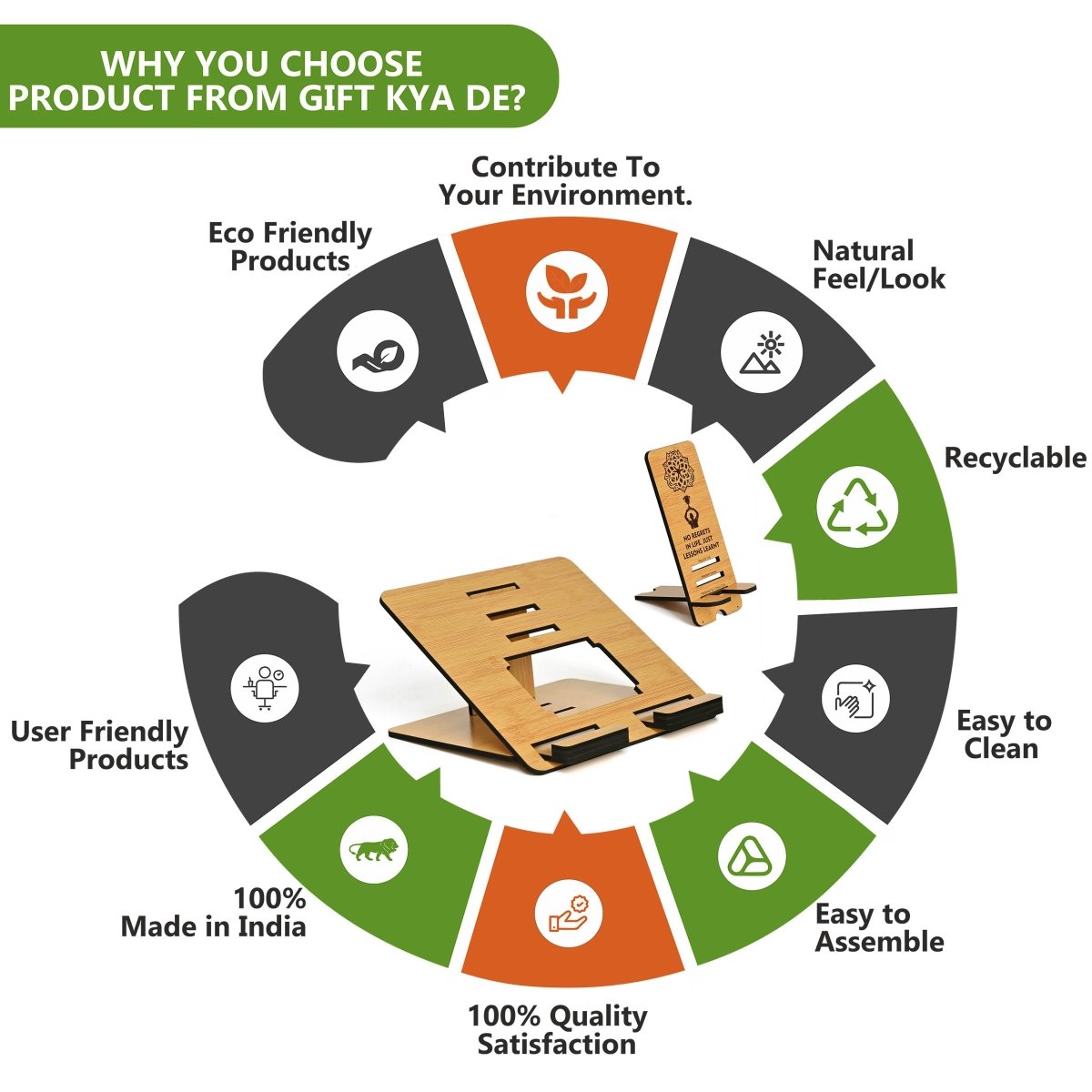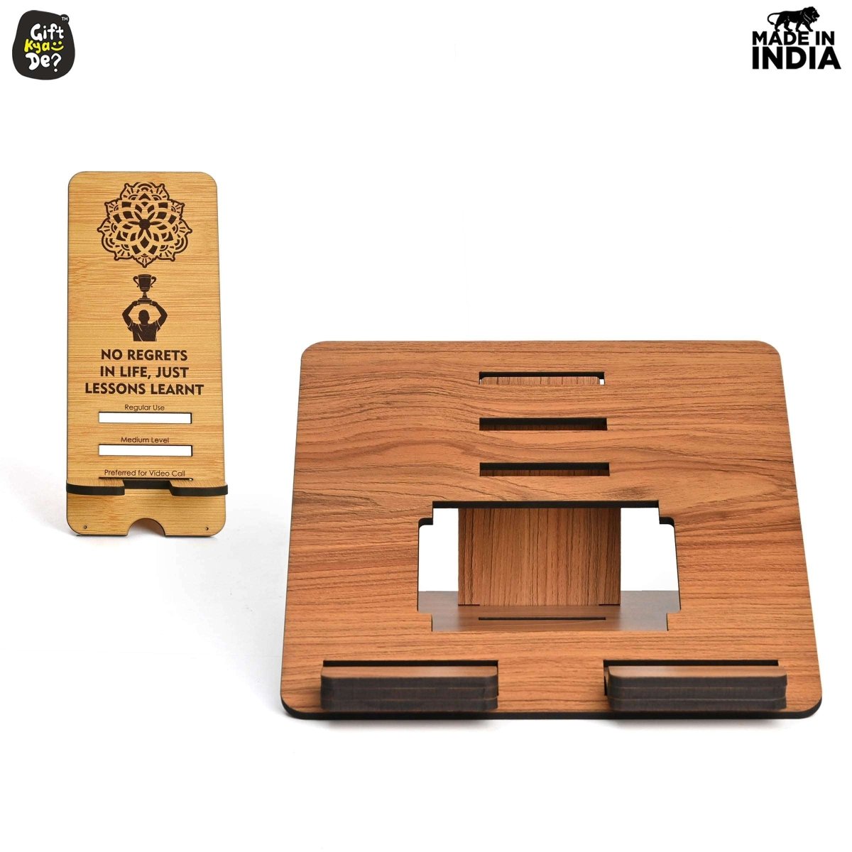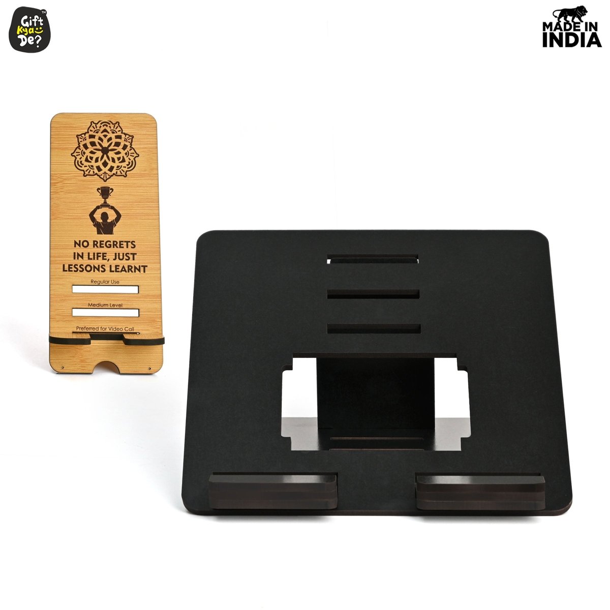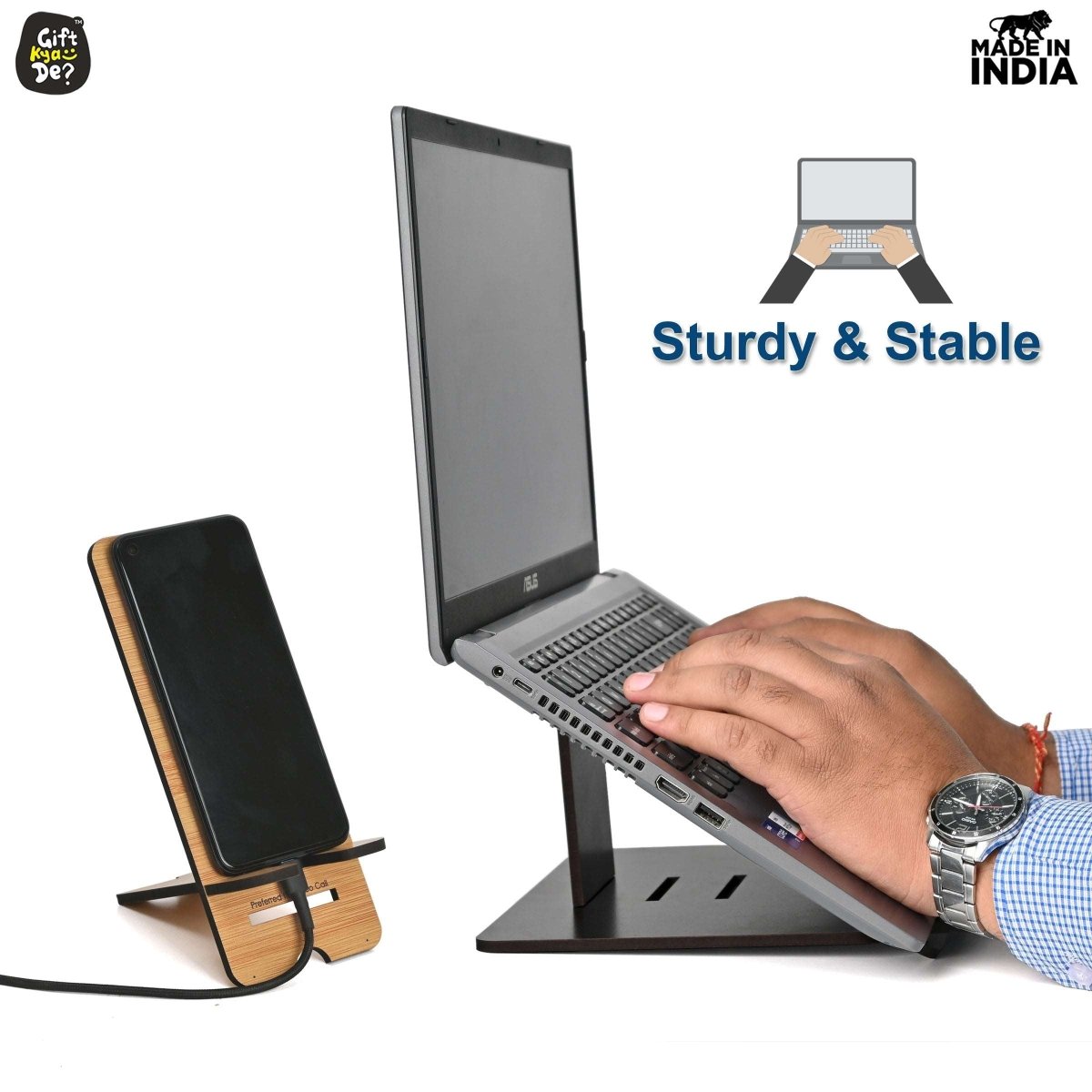Gift Kya De 3 Level Portable Laptop Stand with Portable Mobile Holder Combo | Work From Home | Corporate Gifts