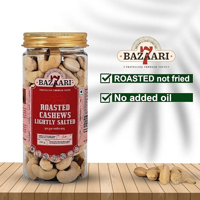 7Bazaari quality: Handpicked selection of top-quality dry fruits. Rich, creamy cashew infused with aromatic roasting flavors. Crafted with premium cashews for a decadent dairy-free indulgence.