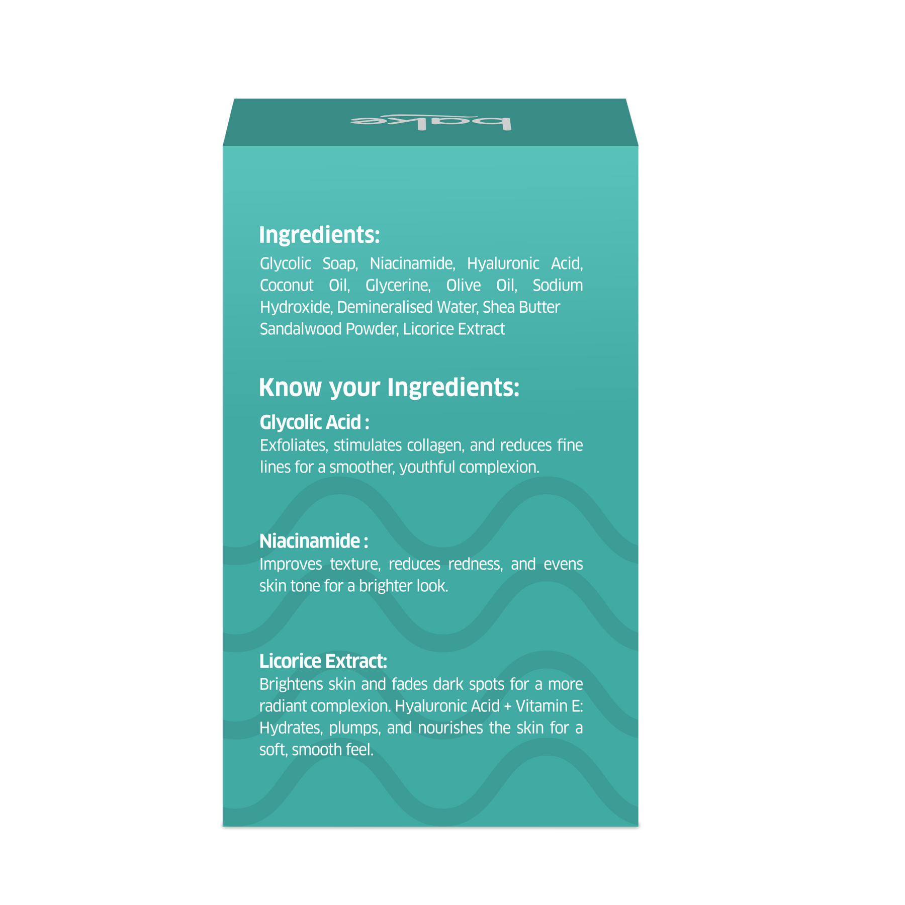 Reveal smoother, brighter skin with BAKE 8% Glycolic Acid Scrub Treatment Soap, expertly formulated to exfoliate, de-tan, and target pigmentation. Enriched with 8% Glycolic Acid and 3% Niacinamide, this high-performance soap deeply cleanses and resurfaces skin for a visibly even-toned and radiant look. It gently buffs away dead skin cells, lightens dark spots, and helps reduce dullness across underarms, knees, elbows, and more. The addition of Niacinamide strengthens the skin barrier, controls excess oil, and promotes a healthy glow. Ideal for both men and women, this soap can be used on the face and body for smoother texture, brightened tone, and effective tan removal. Comes in a value pack of 2 bars (100g each), perfect for daily use.
