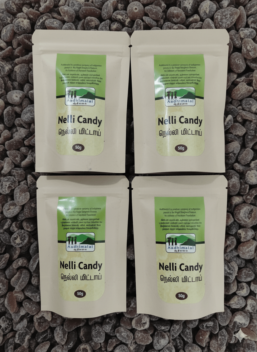 Made from sustainably wild-harvested amla, this product reflects Aadhimalai Pazhangudiyinar Producer Company Ltd’s commitment to ecological and social responsibility. The fruit is collected without harming trees or disrupting the forest ecosystem, ensuring natural regeneration and biodiversity conservation. Processing is done manually by indigenous women producers using solar and low-energy drying methods that minimize carbon impact. Each batch is packed in plastic-free, recyclable, or biodegradable materials to reduce waste and support a circular economy. By choosing Wild Amla Candy, consumers contribute to fair-trade livelihoods, women’s empowerment, and the preservation of traditional forest-based knowledge — proving that mindful consumption can sustain both people and the planet.