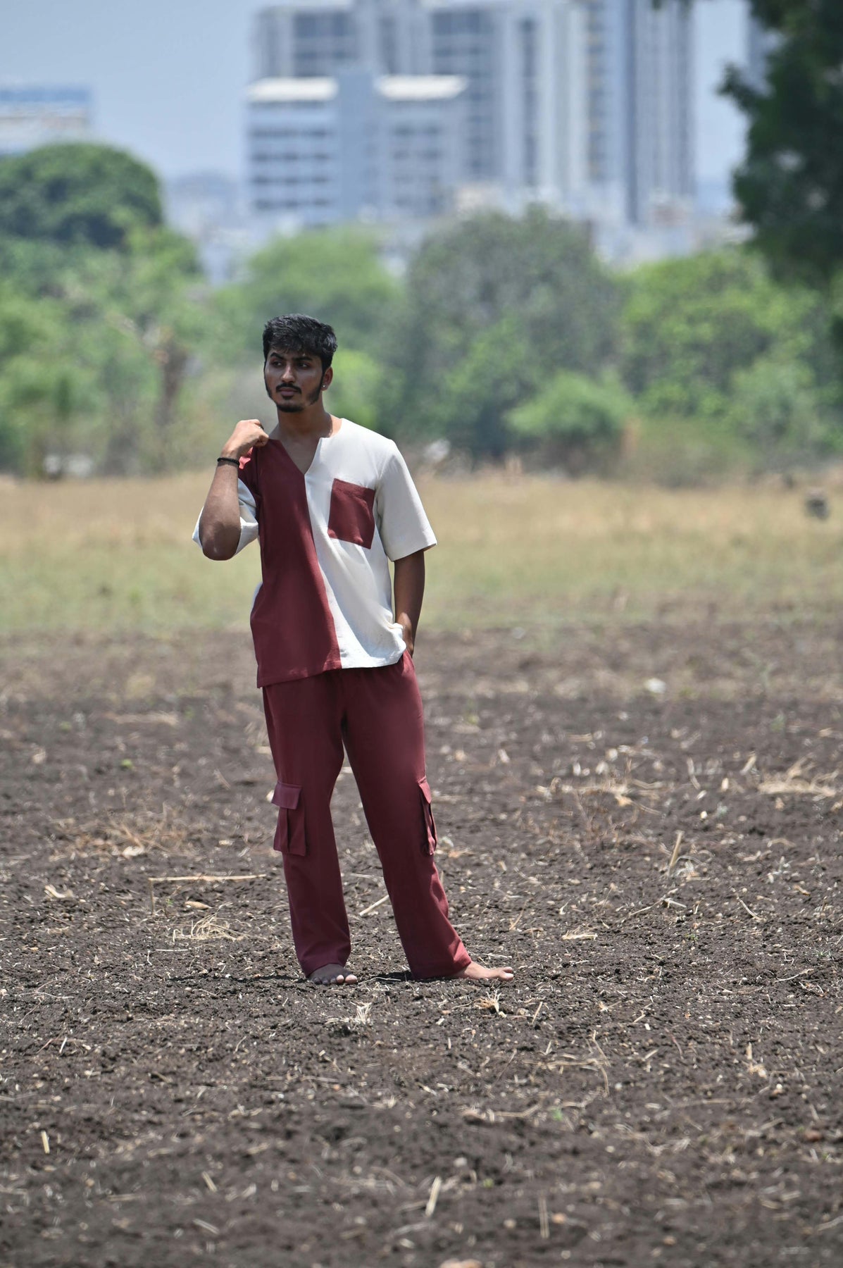 • Earthy Maroon, an effortlessly chic men's pant, crafted from breathable and sustainable Kala Cotton. Embrace comfort and style with its loose fit design and elastic drawstring waist, allowing for a personalized and relaxed fit. The rich maroon hue adds a touch of sophistication, while the box pockets provide functionality with aesthetics. Whether you're strolling along the beach or exploring the streets, this pant emits casual elegance and style.