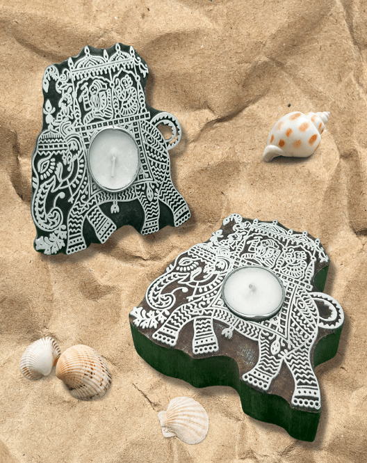 Majestic "Airavat" a mesmerizing embodiment of aesthetic living, gracefully merges the realms of art and functionality. Crafted with exquisite artistry, this enchanting t-light holder unveils the essence of beauty and serenity. Fashioned from a vintage printing block, it carries the legacy of time within its intricate details.