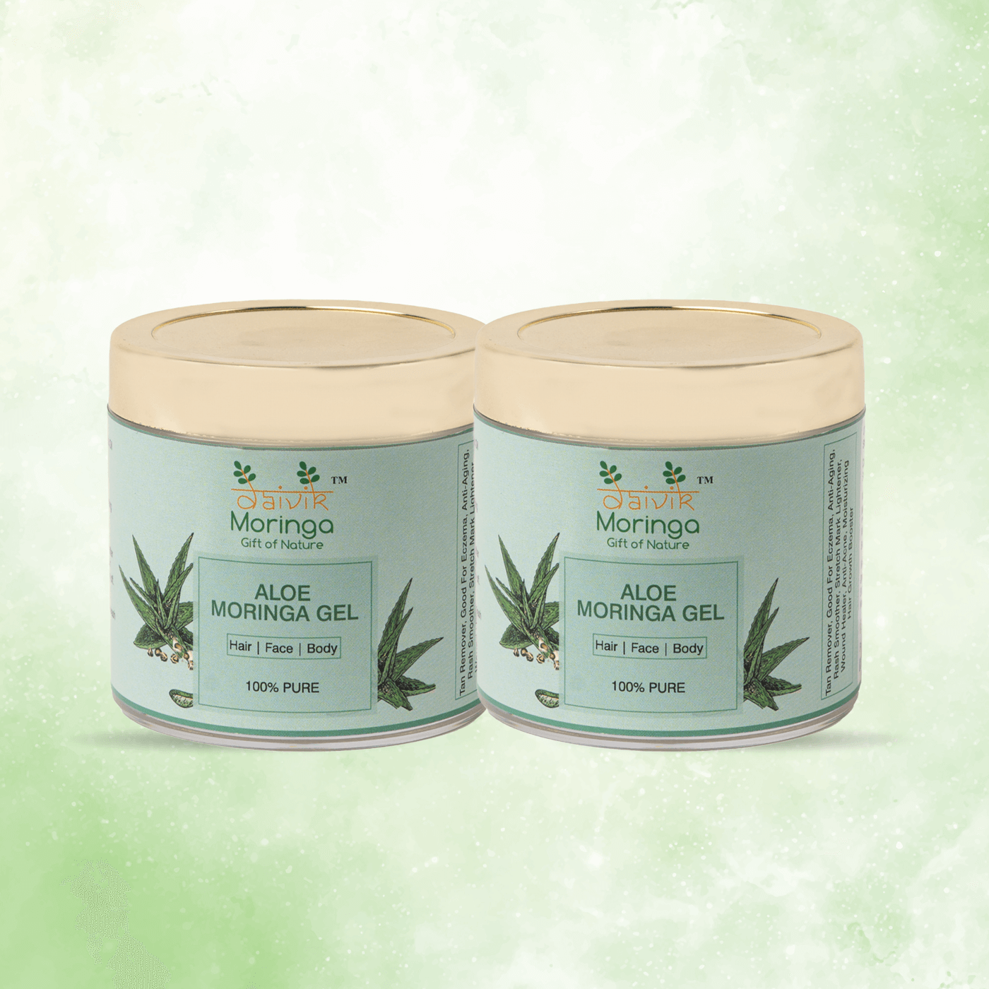 Aloemoringa Gel is a pure, organic aloe vera gel enriched with moringa oil, vitamins C & E, and tea tree essential oil. Known for its versatile benefits, it deeply nourishes and soothes the skin and hair, making it a must-have in daily beauty routines.