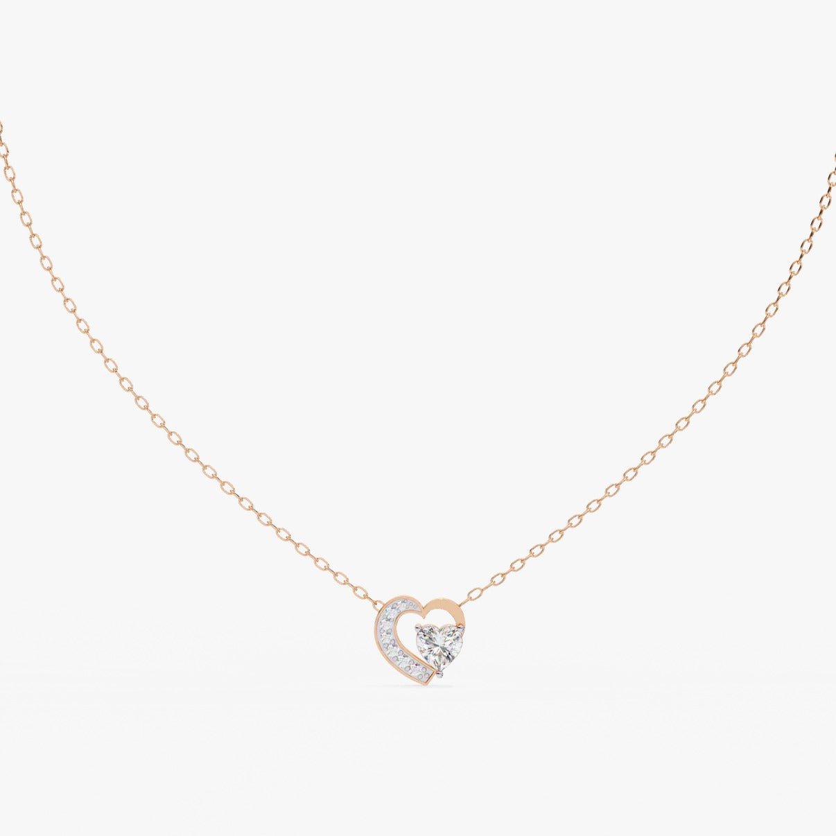 The Amour Spark Pendant is a romantic blend of softness and brilliance. A heart-shaped silhouette, lined with petite round diamonds, gracefully cradles a prominent heart-cut centerpiece — symbolising love held with care. Cast in warm rose gold, this pendant speaks to the modern woman with a tender spirit and a radiant soul.