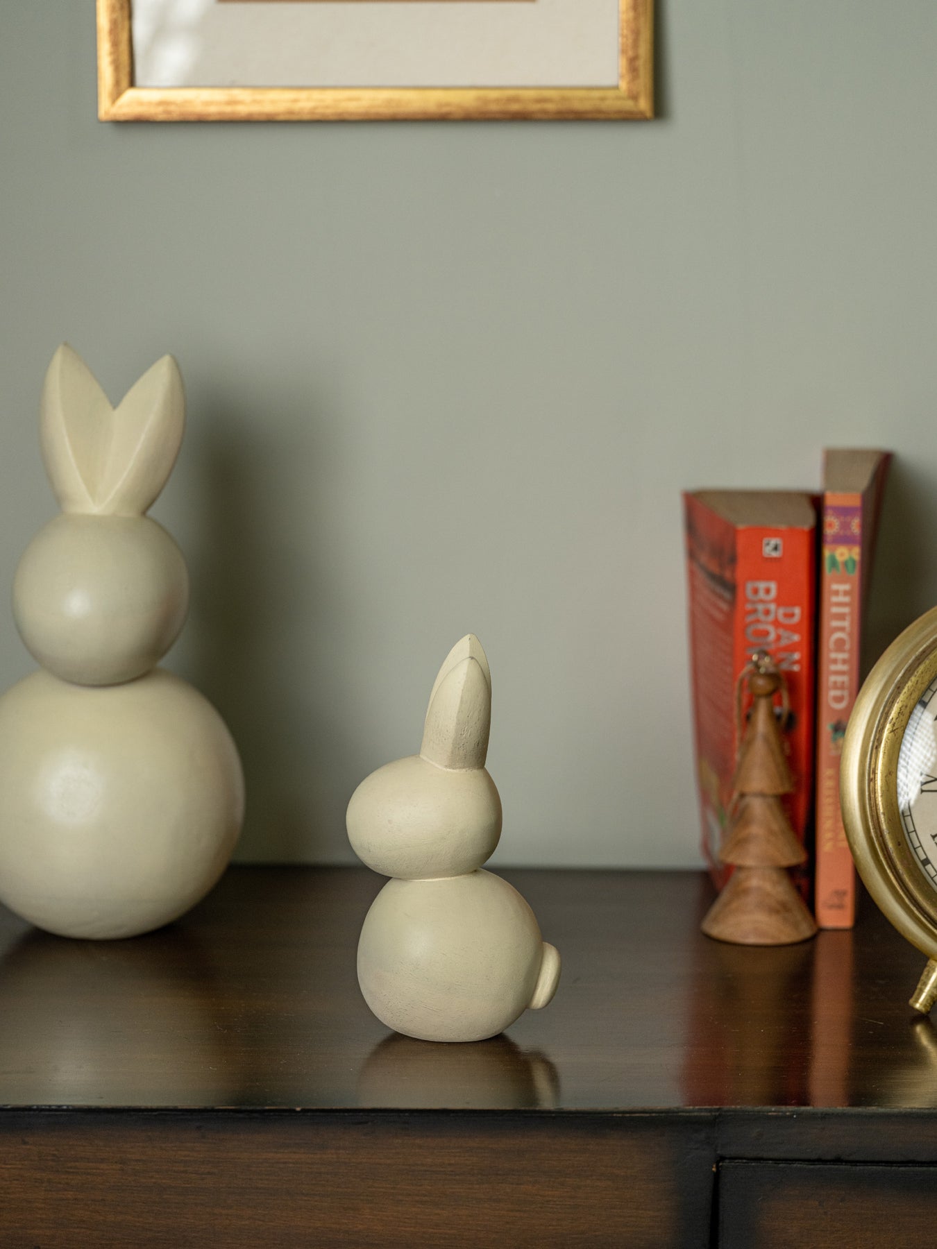 - Set of 2 cute wooden bunnies for decor