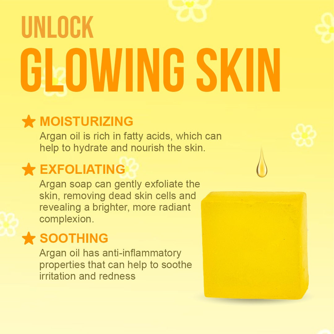 Care Instruction Apply: Wet your skin with water, then gently rub the soap onto your skin. Massage: Create a lather by making bubbles with the soap, then massage it gently onto your skin. Rinse: Thoroughly wash off the soap from your skin with water. Pure Base: Ensures a thorough and contaminant-free cleanse, leaving your skin feeling fresh and revitalized. Cleansing Surfactant: Effectively emulsifies oils and dirt. Ensures a deep and comprehensive clean without stripping your skin of its natural moisture. Hydration Boost: Draws moisture to the skin and providing long-lasting hydration. Also, keeps your skin soft and nourished throughout the day. Nourishing Moisture: Infuses your skin with deep hydration, leaving it feeling soft, supple, and rejuvenated. Gentle Exfoliation: Promotes healthy cell turnover, revealing smoother, younger-looking skin while gently removing dead skin cells. Mild & Effective: Cleanses gently yet effectively, eliminating impurities without causing irritation or discomfort. Antioxidant Rich: Packed with antioxidants, it helps protect your skin against premature aging and damage caused by environmental stressors. pH Stability: Maintains a gentle balance suitable for all skin types, ensuring your skin feels comfortable and refreshed after each use. Brightens Skin and Fades Dark Spots: Helps even out skin tone, leaving your complexion looking brighter and more radiant while reducing the appearance of dark spots over time. Argan Aurole Soap is the go-to choice for anyone seeking a skincare solution that's as versatile as it is effective. Regardless of your skin type, whether it's oily, dry, or sensitive, this soap is formulated to cater to all needs. If you're someone who appreciates simplicity without compromising on quality, this is the perfect addition to your daily routine. Ideal for those seeking a straightforward yet nourishing cleanse, it's designed to deliver results without any unnecessary frills. Whether you're looking for a reliable everyday soap or aiming to indulge your skin in gentle care, Argan Aurole Soap offers a solution that's bound to leave you satisfied. Say goodbye to complicated skincare routines and hello to a soap that understands and meets your needs with ease. Caution: Do not ingest. Discontinue use if irritation or redness occurs. Avoid direct contact with eyes.