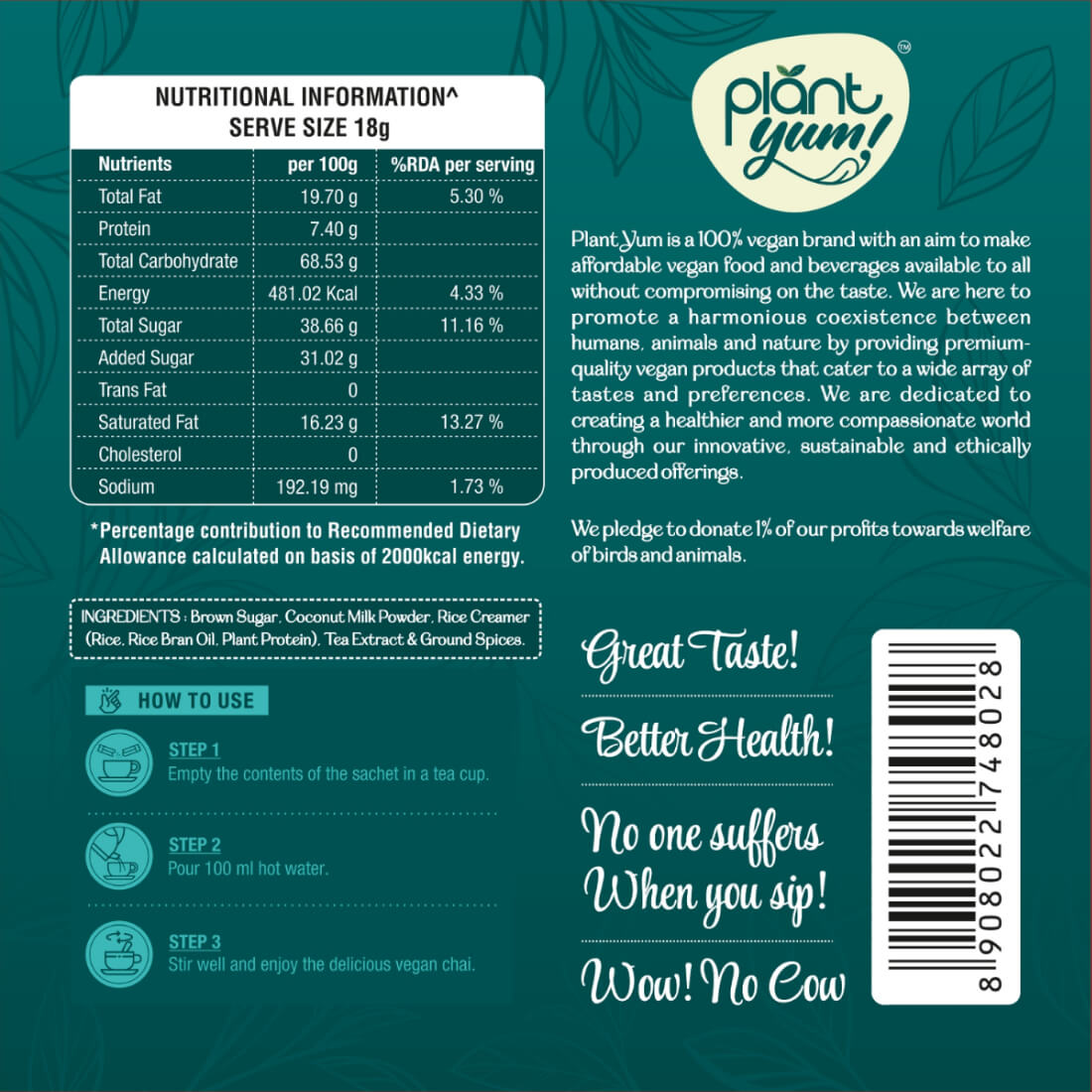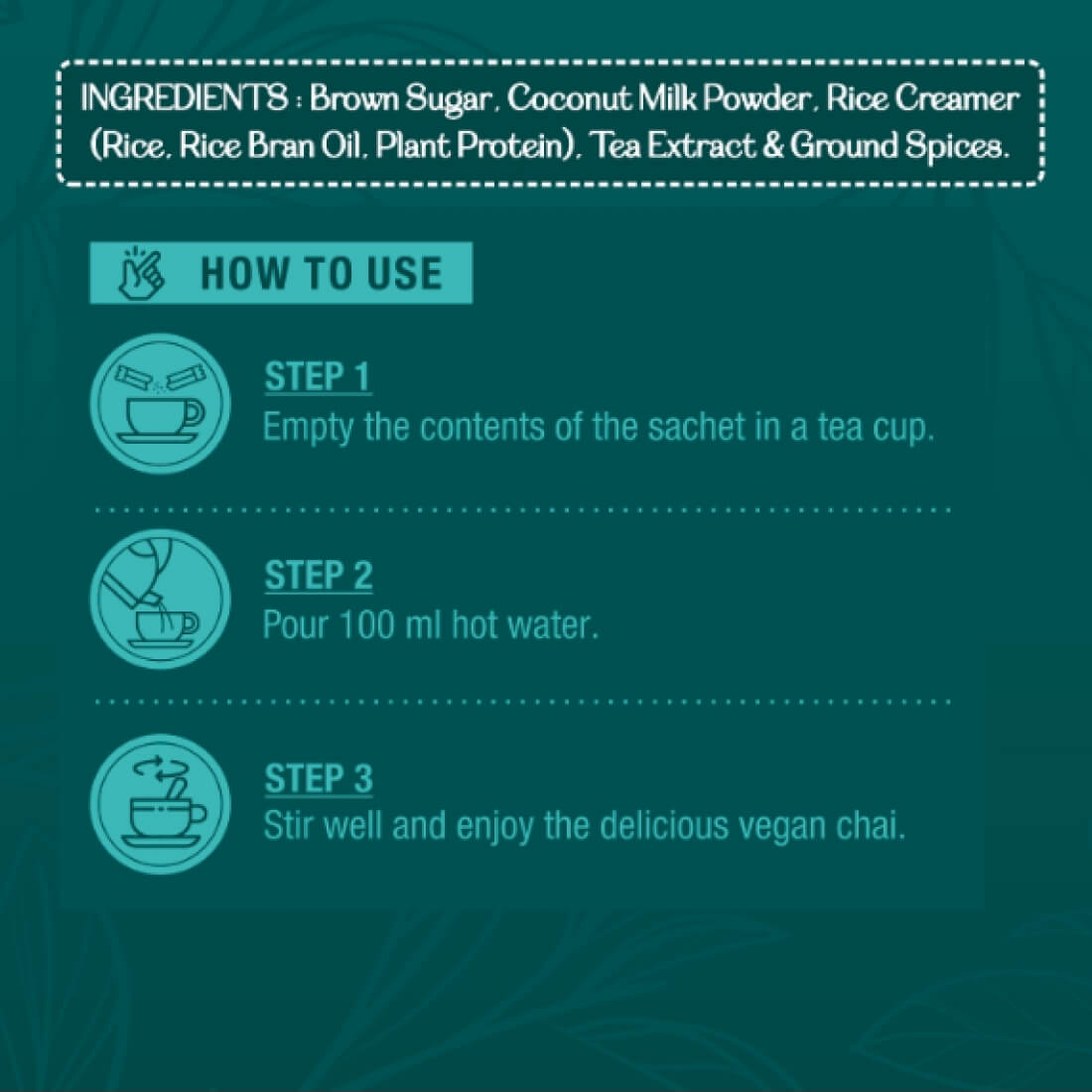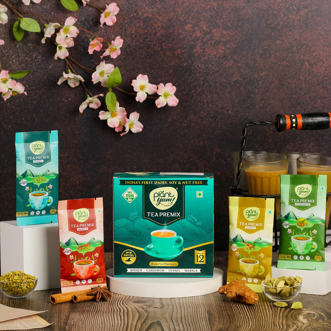 Enjoy the perfect cup of dairy-free chai with our Instant Tea Premix. Made with coconut milk powder, rice creamer, and aromatic ground spices, this tea blend delivers an authentic taste without the need for milk. Whether you love the warmth of ginger, the fragrance of cardamom, the refreshing notes of fennel, or the boldness of masala, our assorted pack has it all.