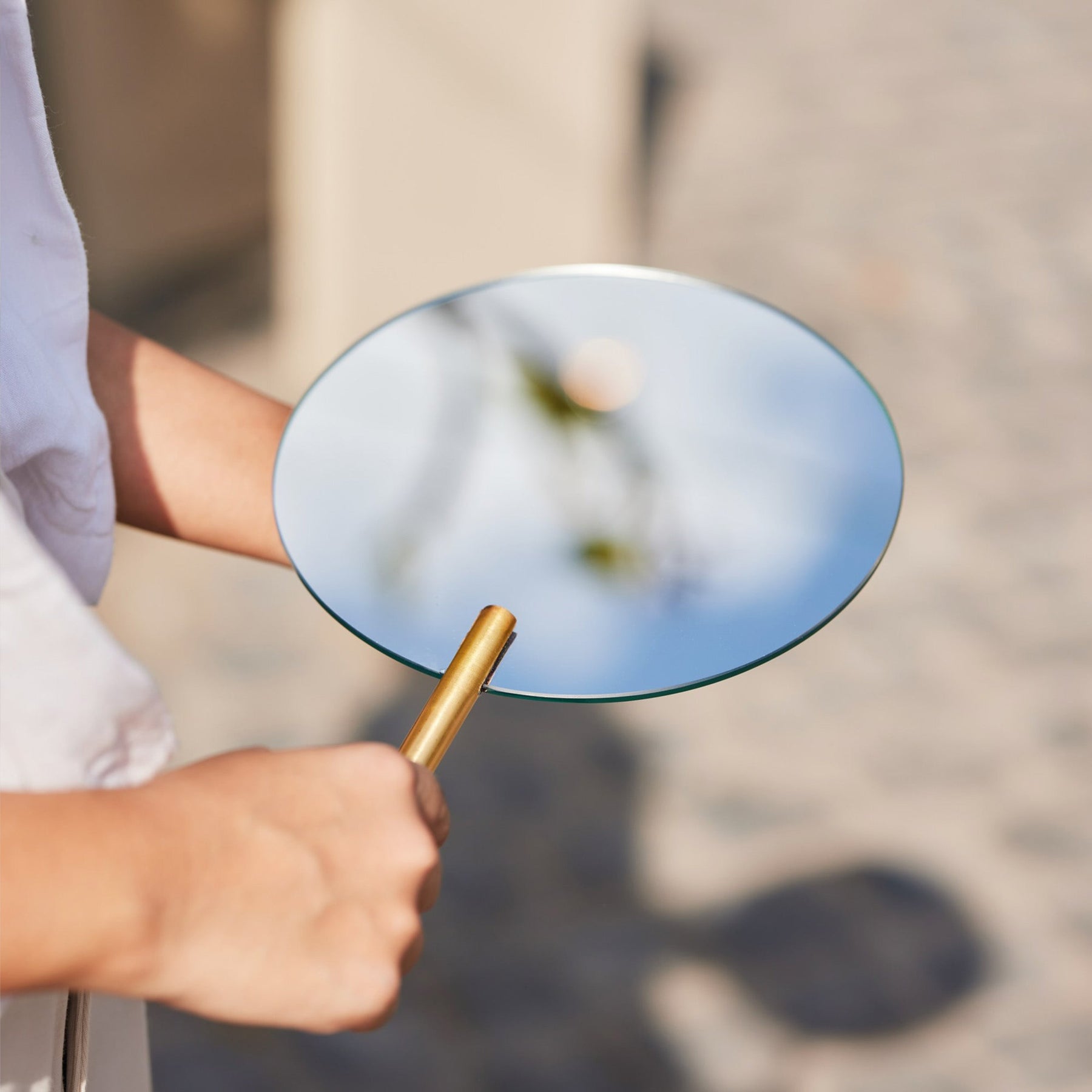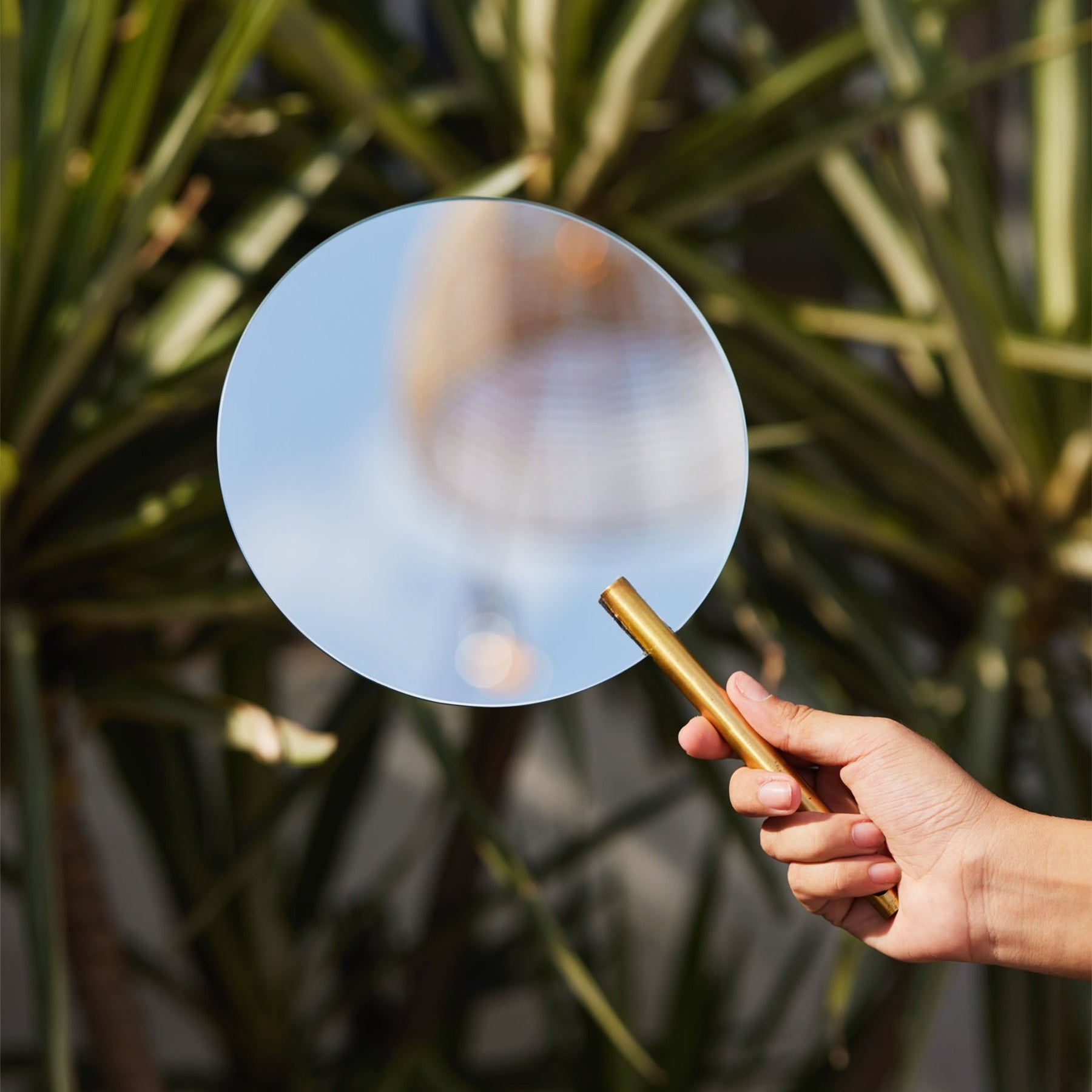 This beautiful mirror is designed with a circular shape that is sure to make a statement in any room. The handle is made of a high-quality, durable material and finished with a glamorous gold color that will complement any decor. It is perfect for use as a dressing mirror or as a statement piece in your home.