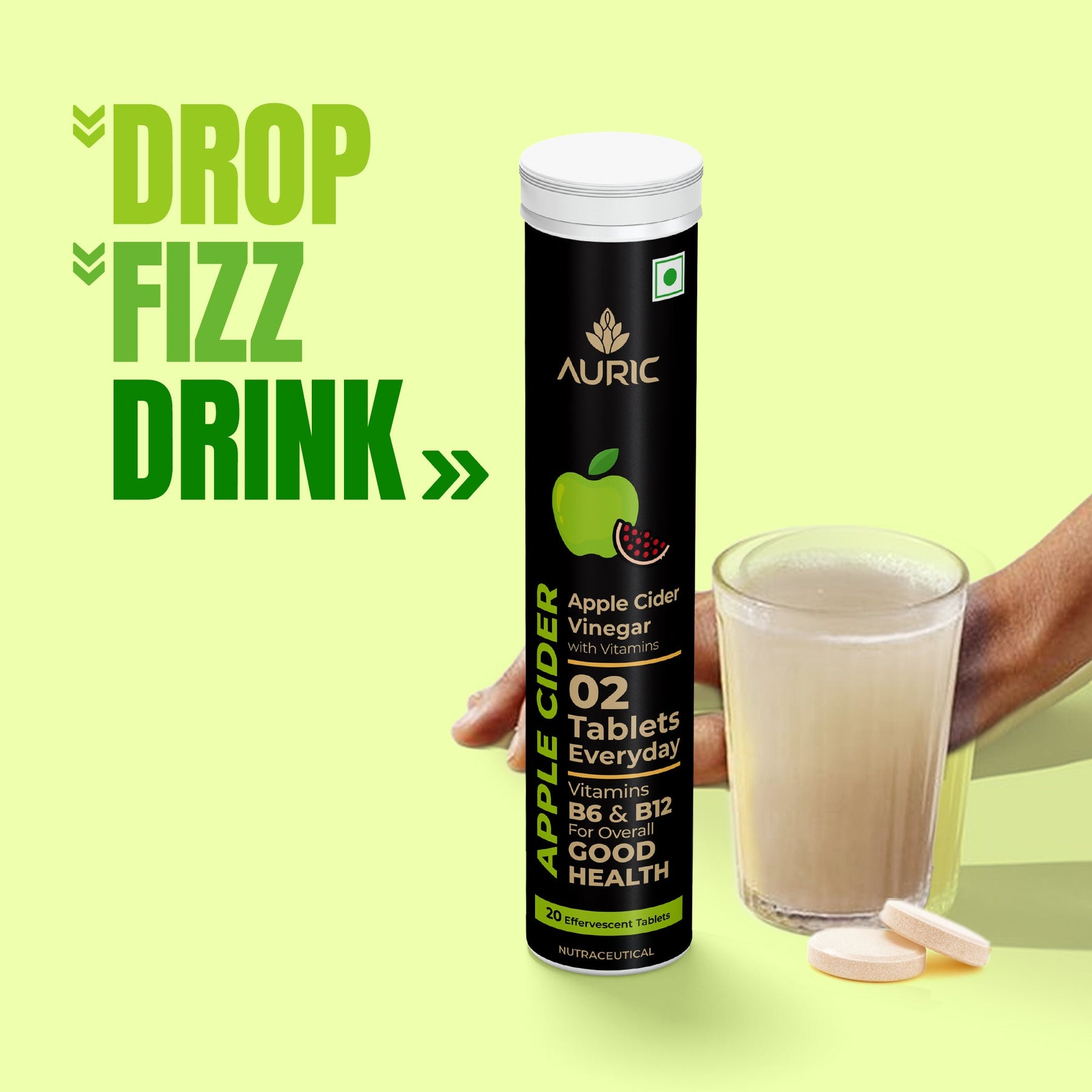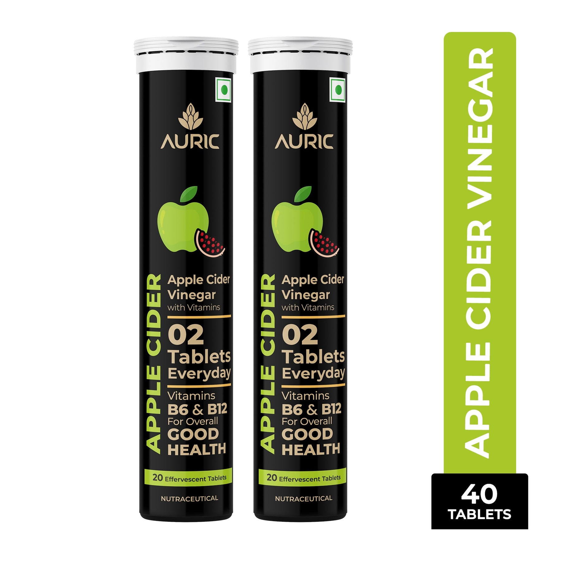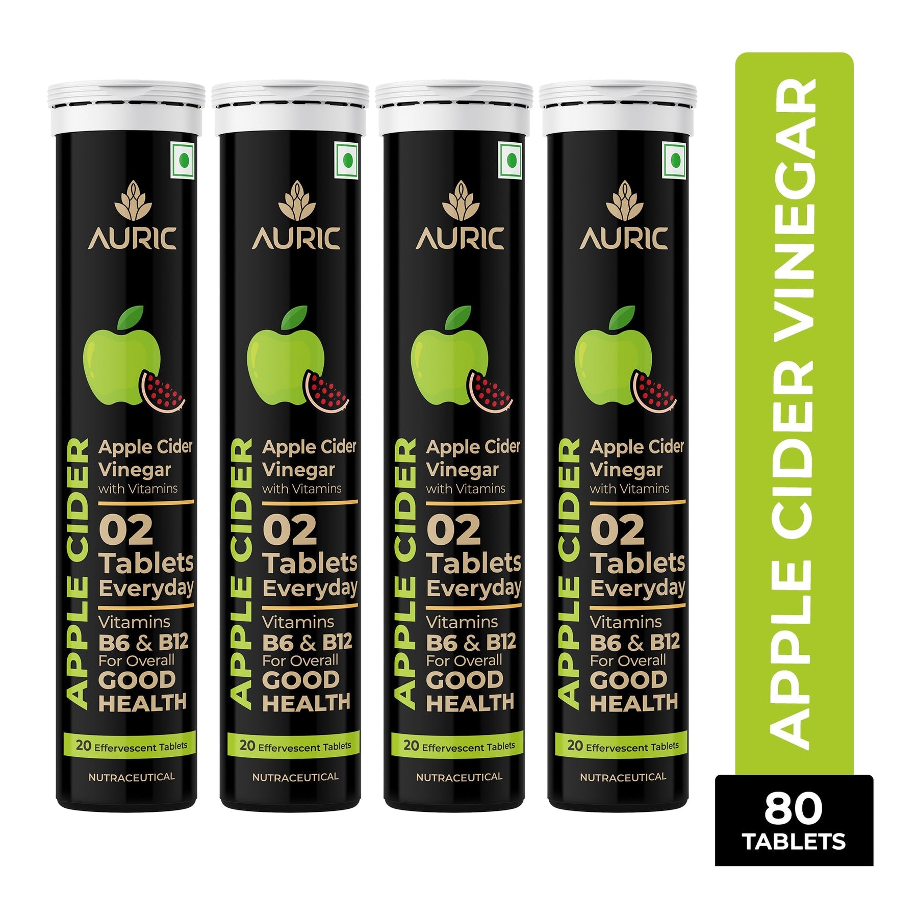 - BETTER DIGESTION - Auric ACV tablet contains Vitamin B6 and B12 along with premium pomegranate extract resulting in less bloating and better food absorption. Moreover, the acetic acid derived from pure apple cider with the mother promotes better gut health. Beat the bloat with the incredible formula of Auric Apple Cider Vinegar with Vitamins.;MANAGE BLOOD SUGAR LEVEL - Auric ACV tablet is rich in acetic acid and vitamins. The acetic acid in vinegar slows down the rate at which the stomach empties the food you've eaten into the small intestine, which in turn slows the breakdown of carbohydrates and gives the body more time to remove glucose from the blood. This ultimately reduces the spike in blood sugar you'd typically see after eating