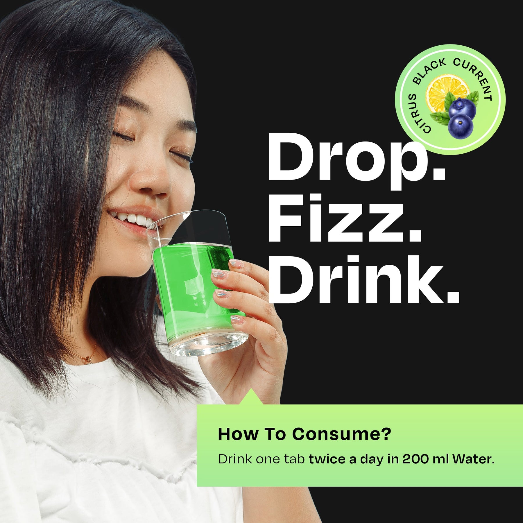 How to Consume: Simply drop one tablet in 250ml of water, wait for it to dissolve into a fizzy drink, and enjoy. Safe for adults, it's recommended to consume 2 fizz tablets a day.