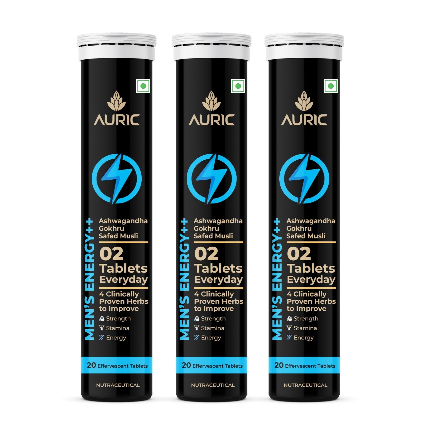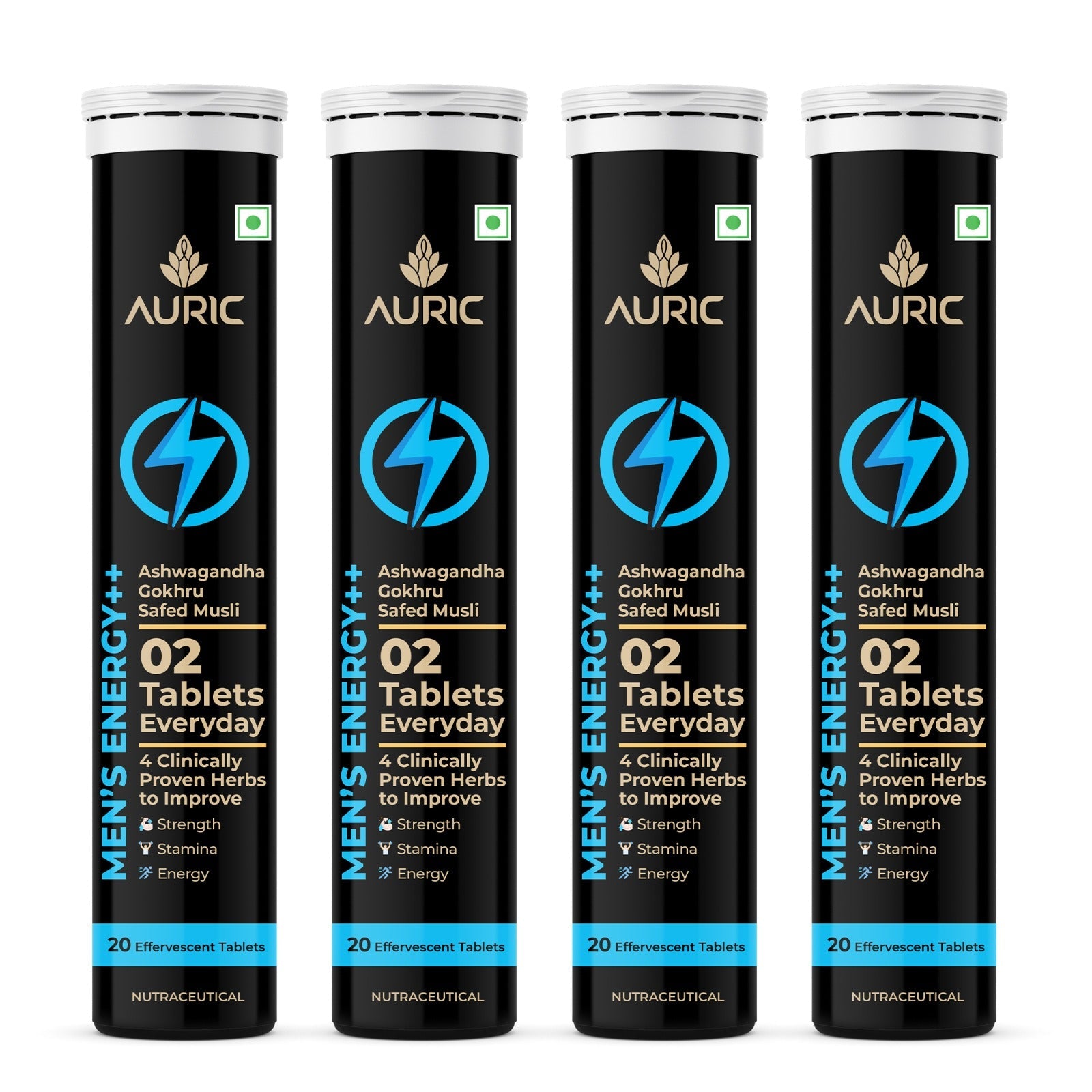 Auric Men’s Energy++ Ashwagandha, Gokshura, Safed Musli, Fenugreek, L Citrulline and Zinc | Helps Improve Vitality, Stamina & Strength
