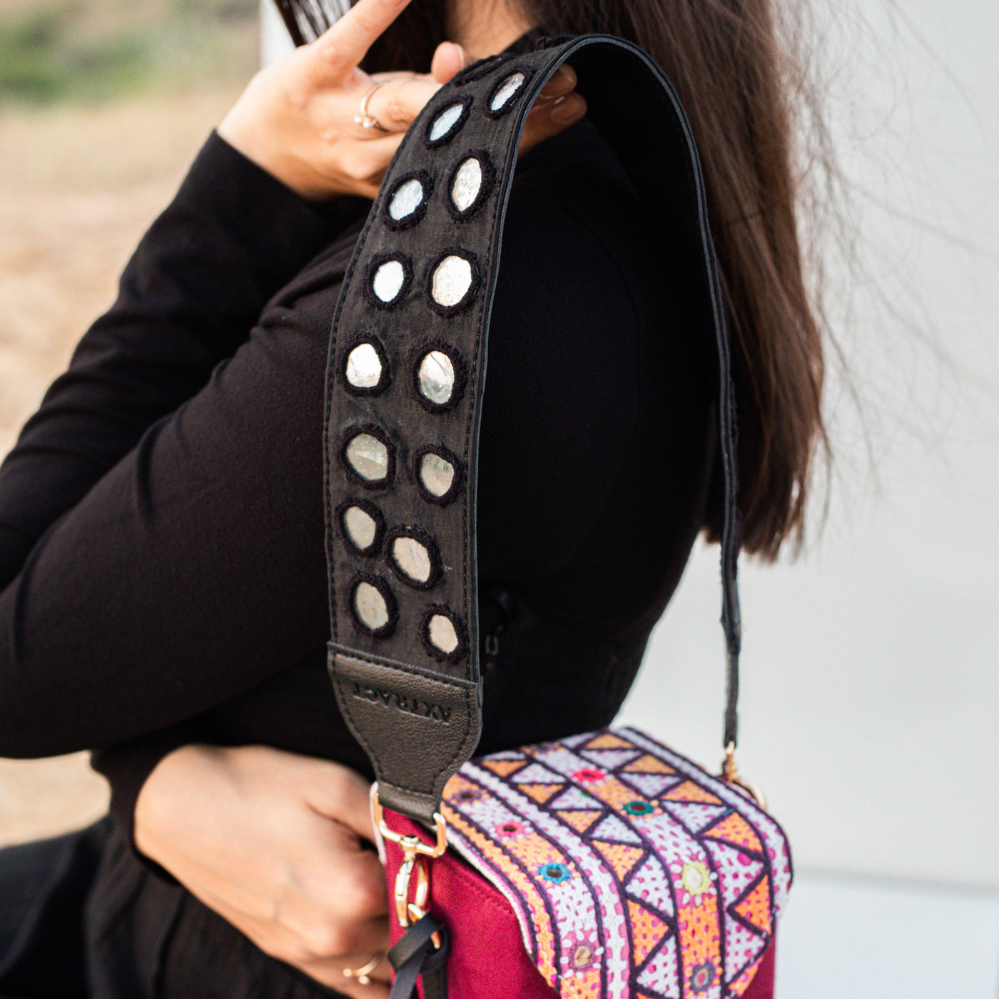 Immerse yourself in the rich tapestry of Kutchi artistry with our hand-embroidered belt featuring intricate 'aabhlas' mirrors. Meticulously crafted by skilled artisans, this accessory effortlessly bridges the gap between tradition and modern aesthetics. Each stitch tells a story, making it a versatile and eye-catching addition to any ensemble. Elevate your style quotient and embrace the cultural allure of Kutch with this one-of-a-kind handcrafted masterpiece.