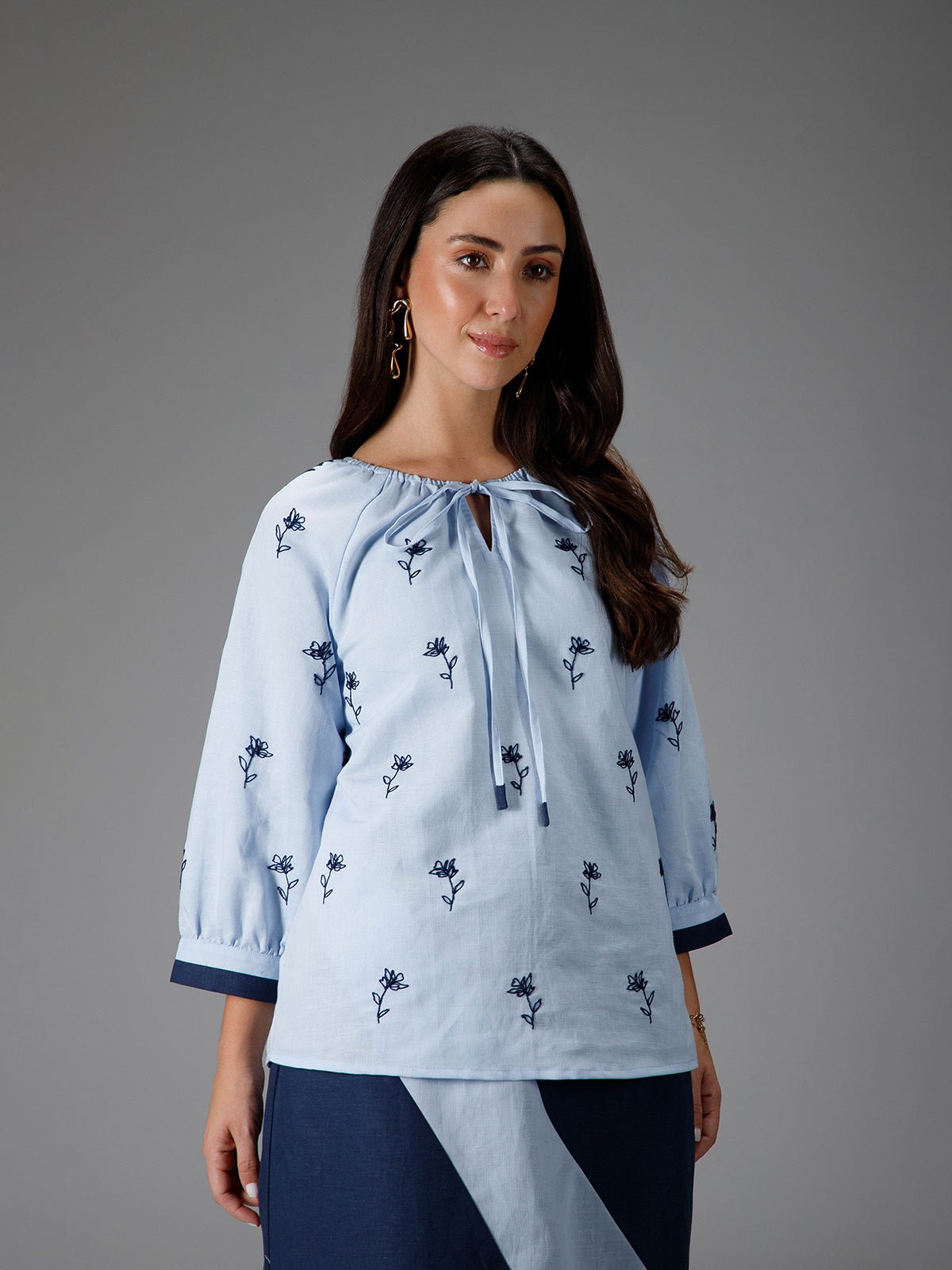 B77 AZURE - Contrast Embroidered Top - Suspire