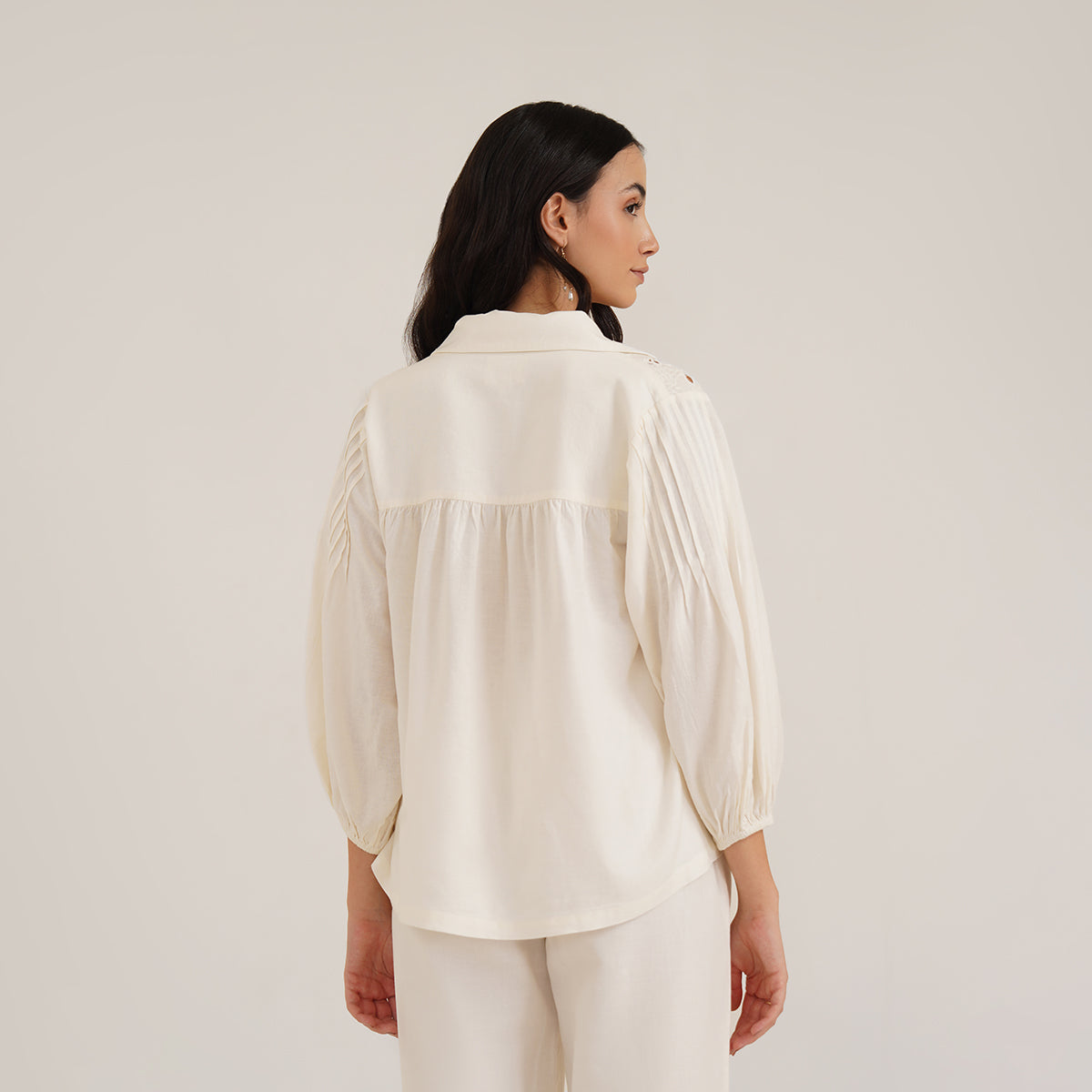 Elevate your everyday style with the B77 HEKA Oversize Linen Shirt, a perfect blend of comfort, artistry, and sustainability. Designed with elegant lantern (bishop) sleeves and intricate hand-done cutwork embroidery on the yoke, this piece brings effortless sophistication to any wardrobe. Part of our exclusive Kosa Collection, it’s ideal for women seeking a chic, breathable, and relaxed-fit shirt for casual or semi-formal looks.