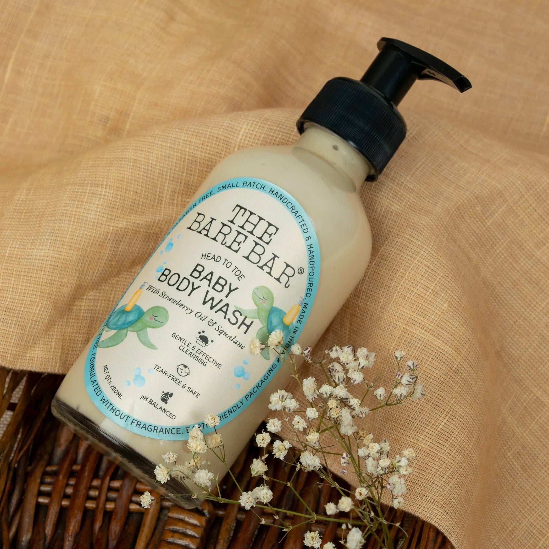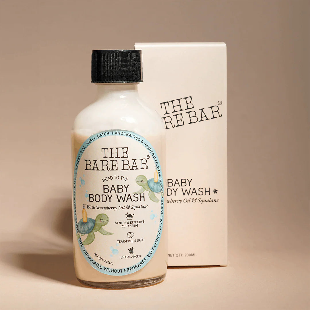 Natural body washes for babies without paraben, sulfate, and synthetic fragrance.