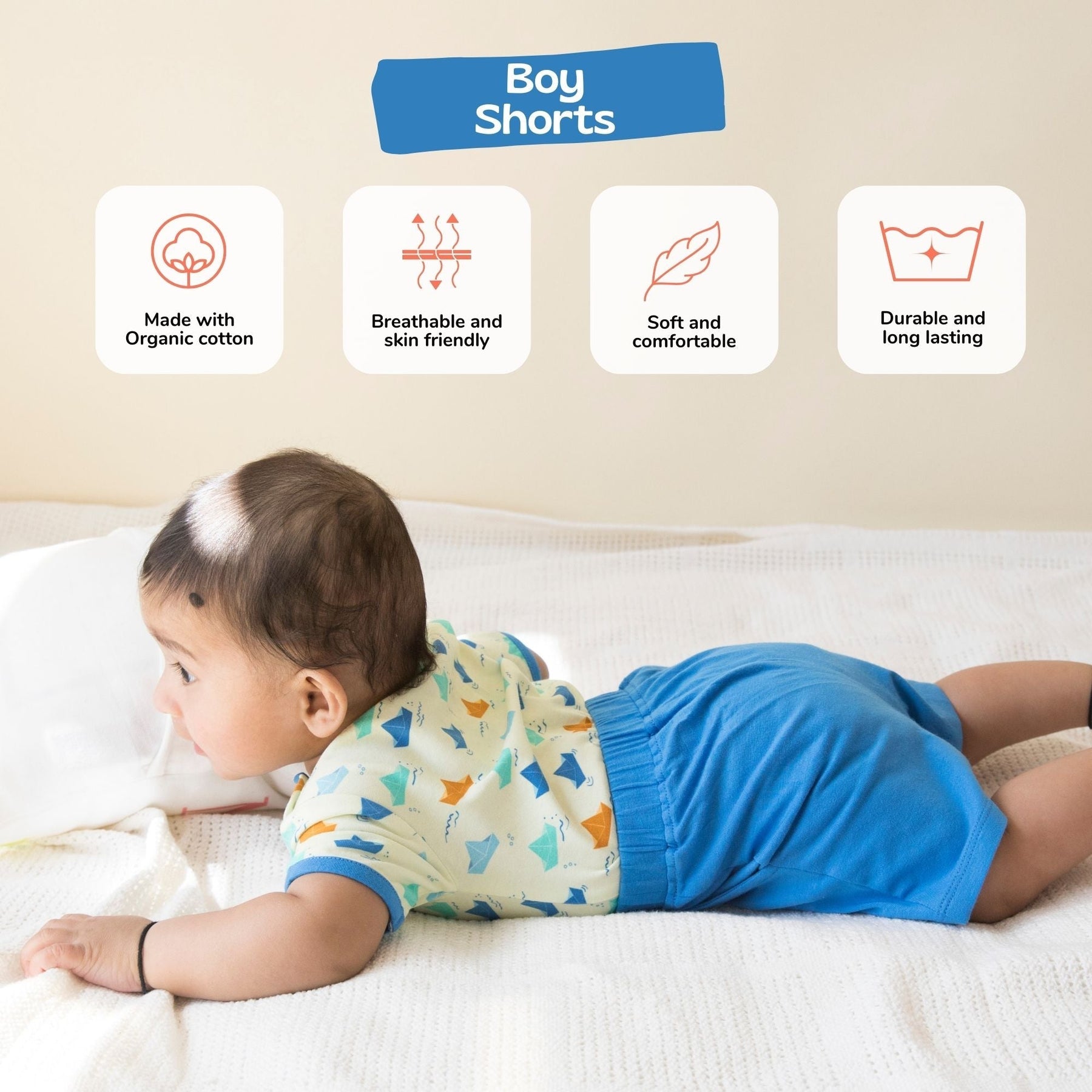 Keep your little tyke cheerful all day long with these Boy Shorts. Made of Organic Cotton, they're super-breathable and soft. Available in Blue, White, and Black.