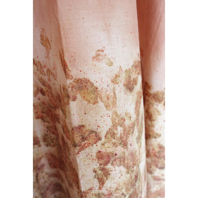 This not only ensures the dress's quality and breathability but also supports local communities. Our commitment to sustainability extends to the dye. Instead of conventional methods that harm the environment, we use sacred temple flowers and Ayurvedic herbs. This particular dress features manjishtha, which imparts a subtle pink color and aslo used Sacred temple roses. By using temple flowers that would otherwise be discarded into waterways, we contribute to reducing marine pollution. The dress is designed for both comfort and style. The straps flow beautifully, offering a touch of elegance. The A-line cut flatters a variety of body types, while the ankle length provides a sophisticated drape.