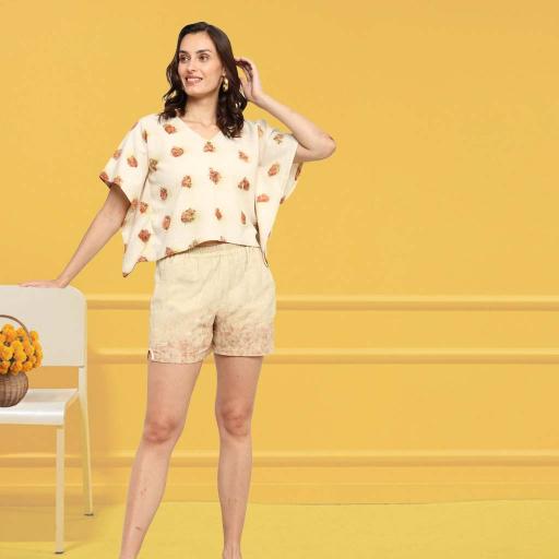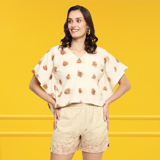 Wearing it is a conscious choice, a celebration of nature's bounty and the skilled hands that crafted it.Made with luxuriously soft, certified organic cotton, this breezy top offers both comfort and conscious fashion. Designed in a relaxed kaftan silhouette, it drapes beautifully, flattering any figure with a loose fit and 22-inch length. The flowing hem and spacious 36-inch width guarantee ease of movement, making it perfect for layering over high-waisted shorts, skirts, or pants. But its beauty goes beyond its silhouette.