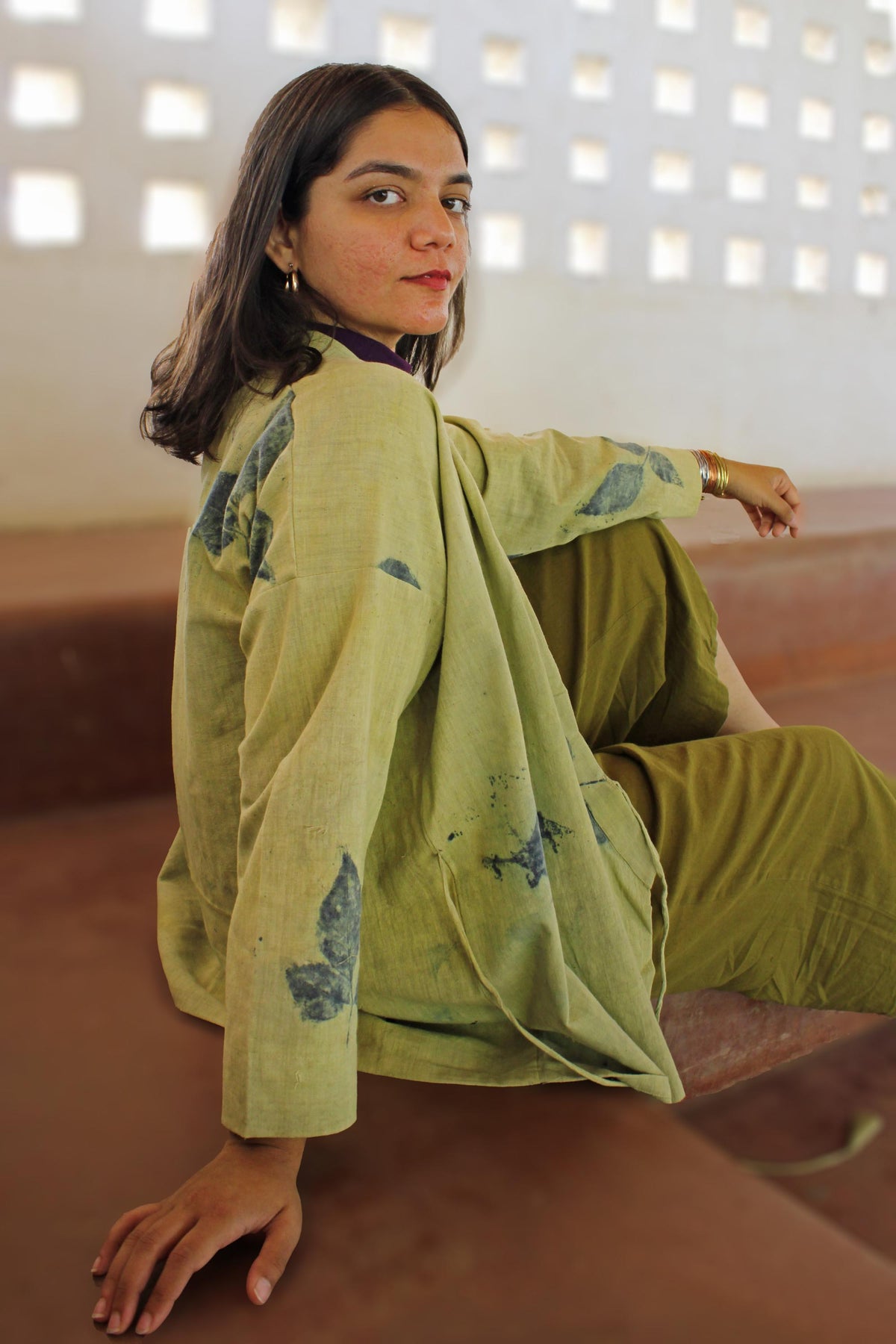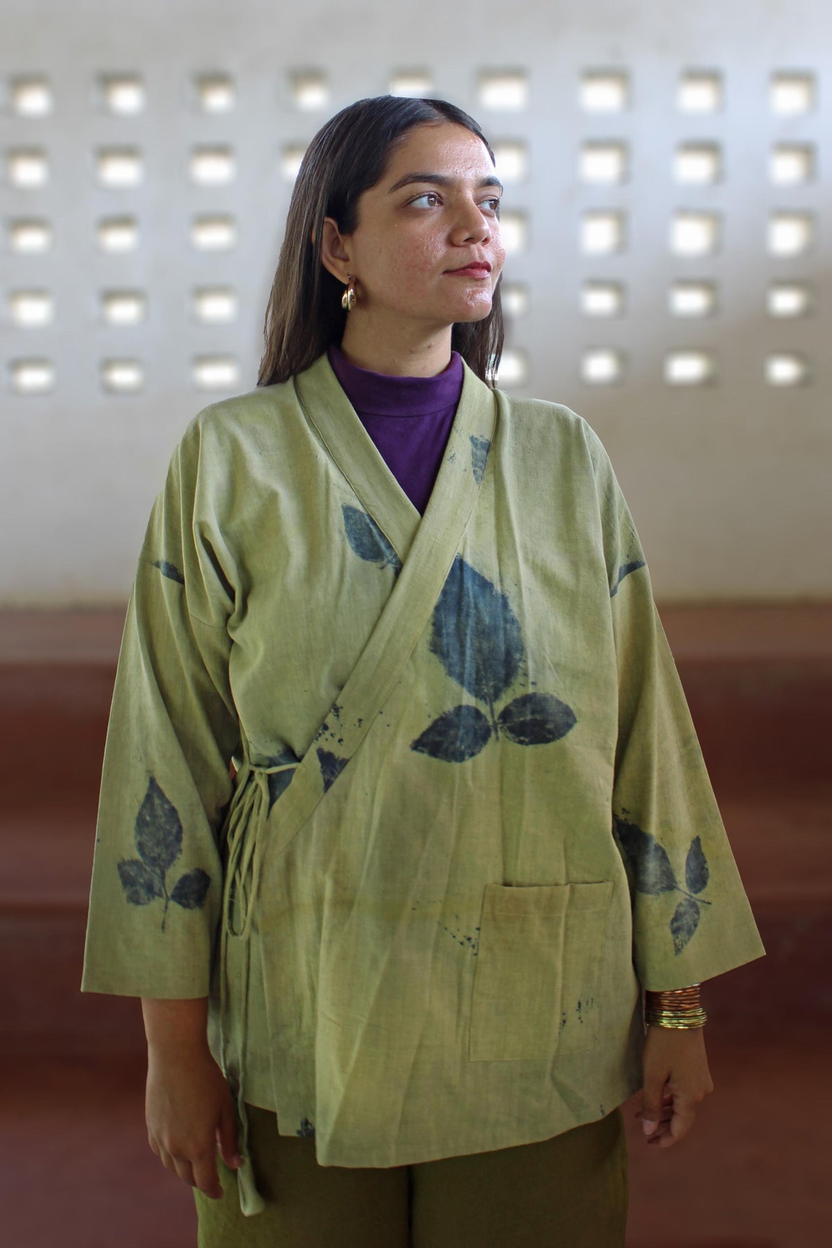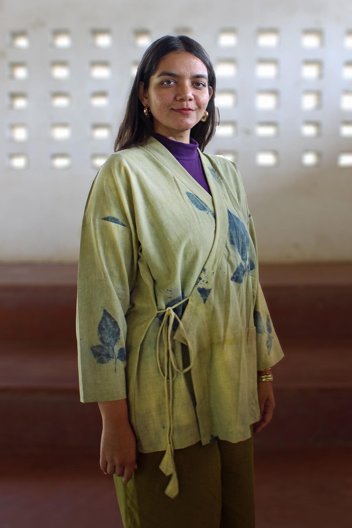 Bageeya "Tulsi Tarang" Khadi Organic cotton Kimono Wrap | Crafted with Harda, Beel patra and Indigo