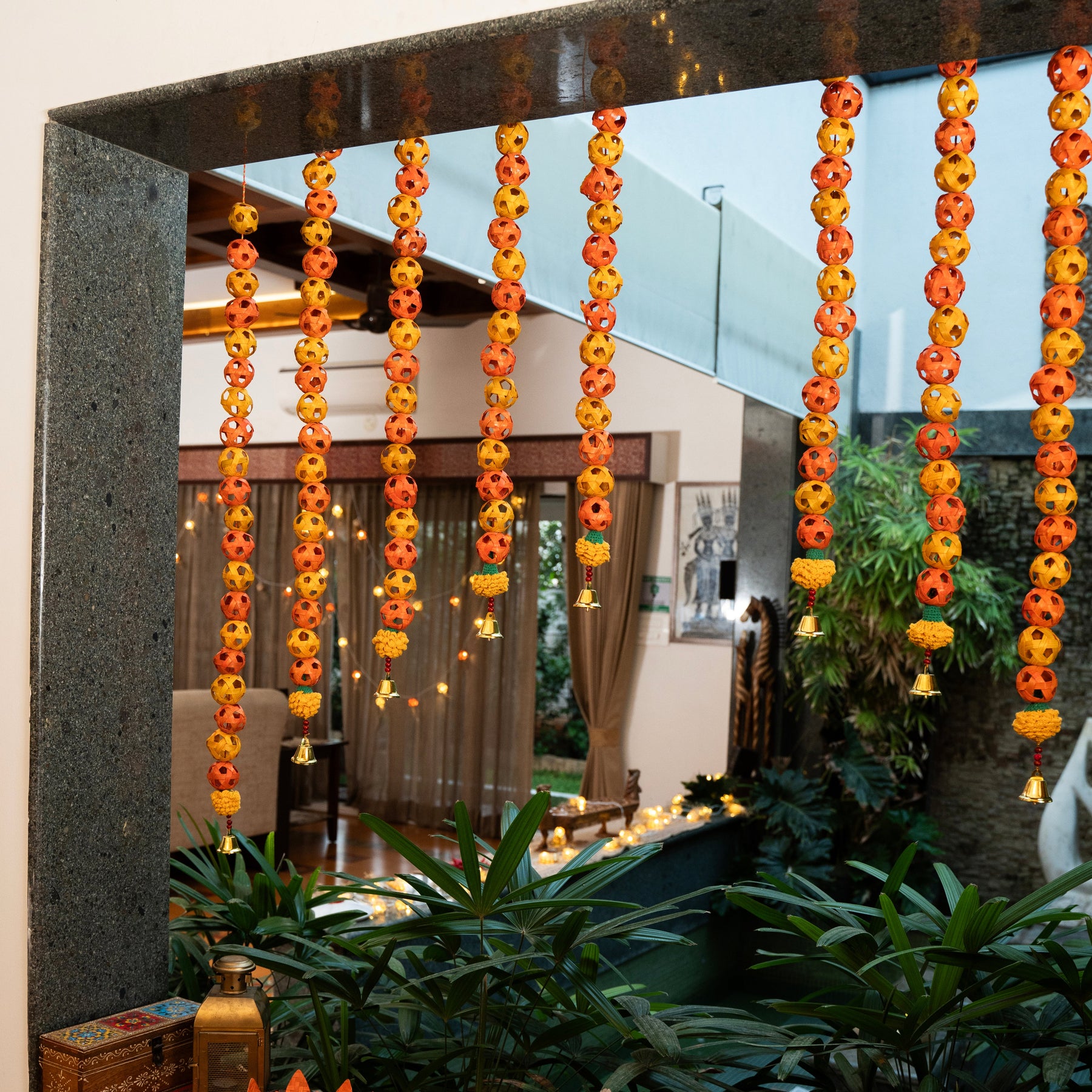 Handcrafted bamboo door hanging, perfect for adding an earthy, festive touch to any entryway. Lightweight, eco-friendly, and ideal for both traditional and contemporary décor.