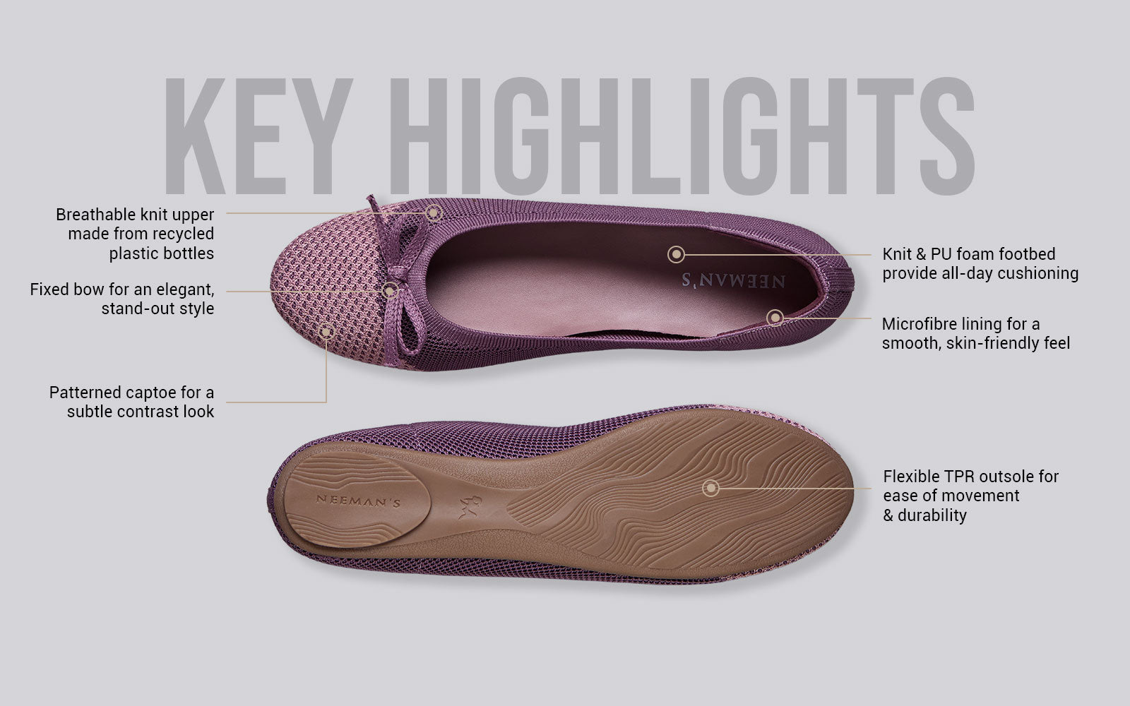 Casual when you want it, dressy when you need it - always ready to go. From morning meetings to evening plans, these ballet flats move with you. Soft knit, a rounded textured toe, and that little bow? Just the right touch of charm in every step. Airy for your toes, cushy for the soles, and soft on the heels - because comfort should keep up with you, not slow you down.