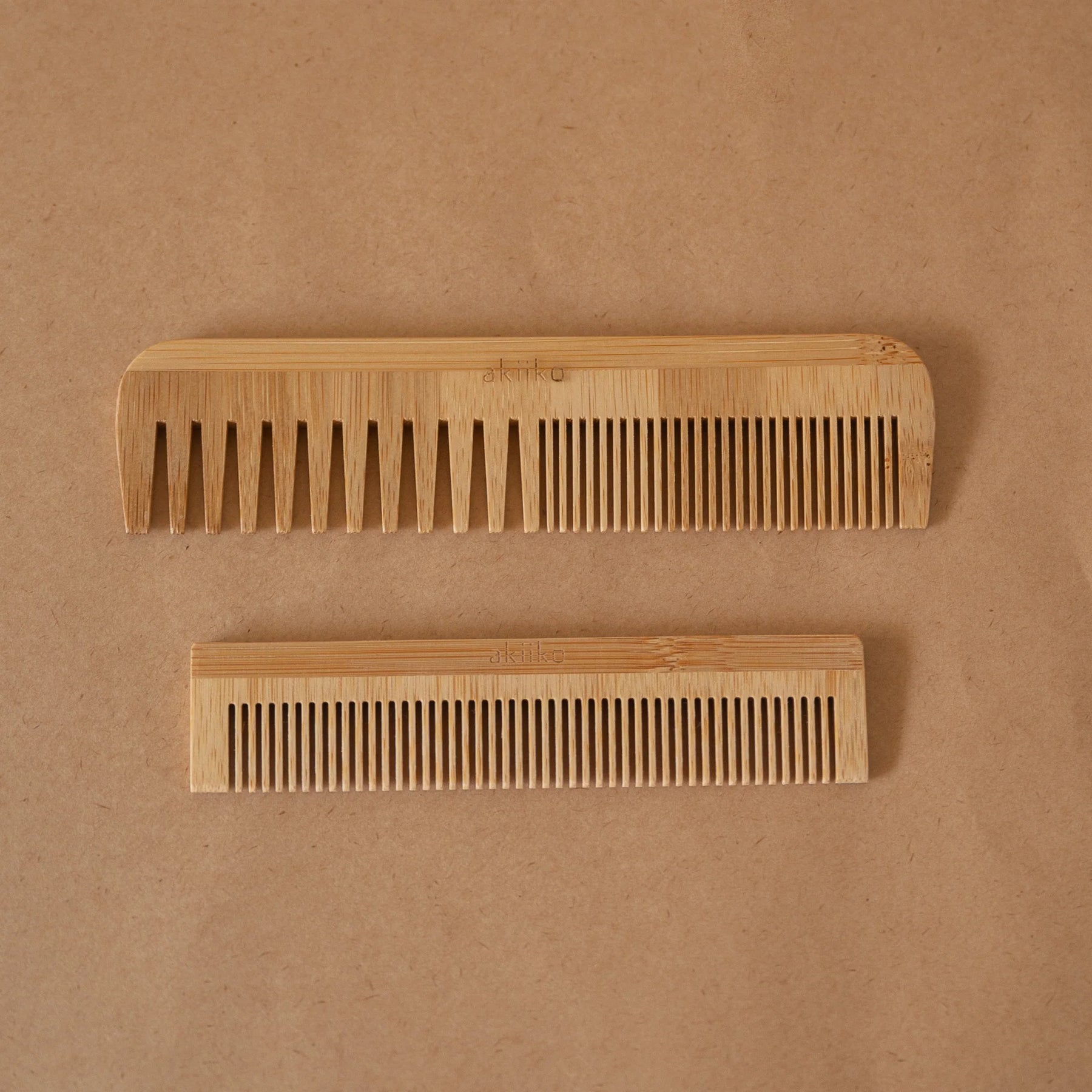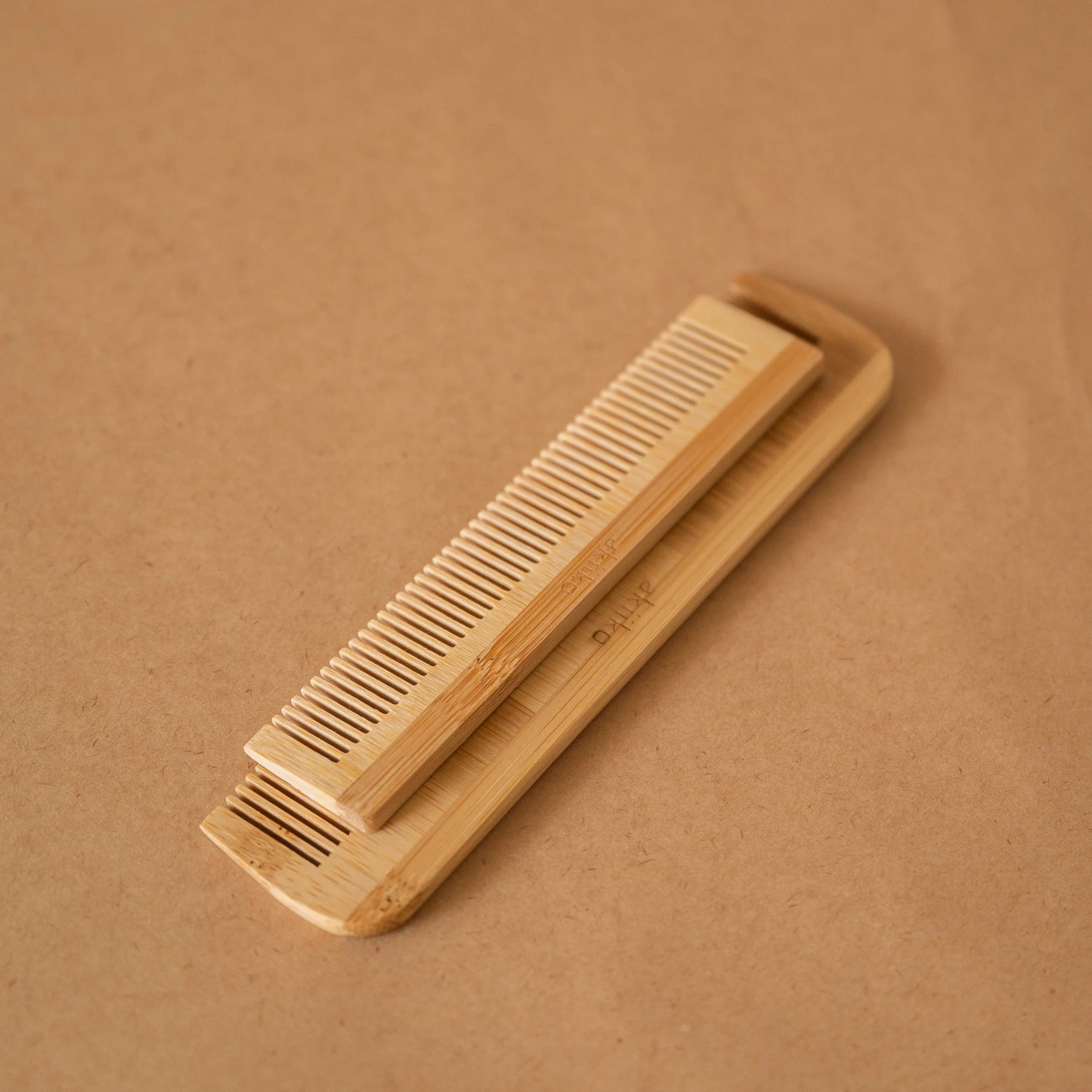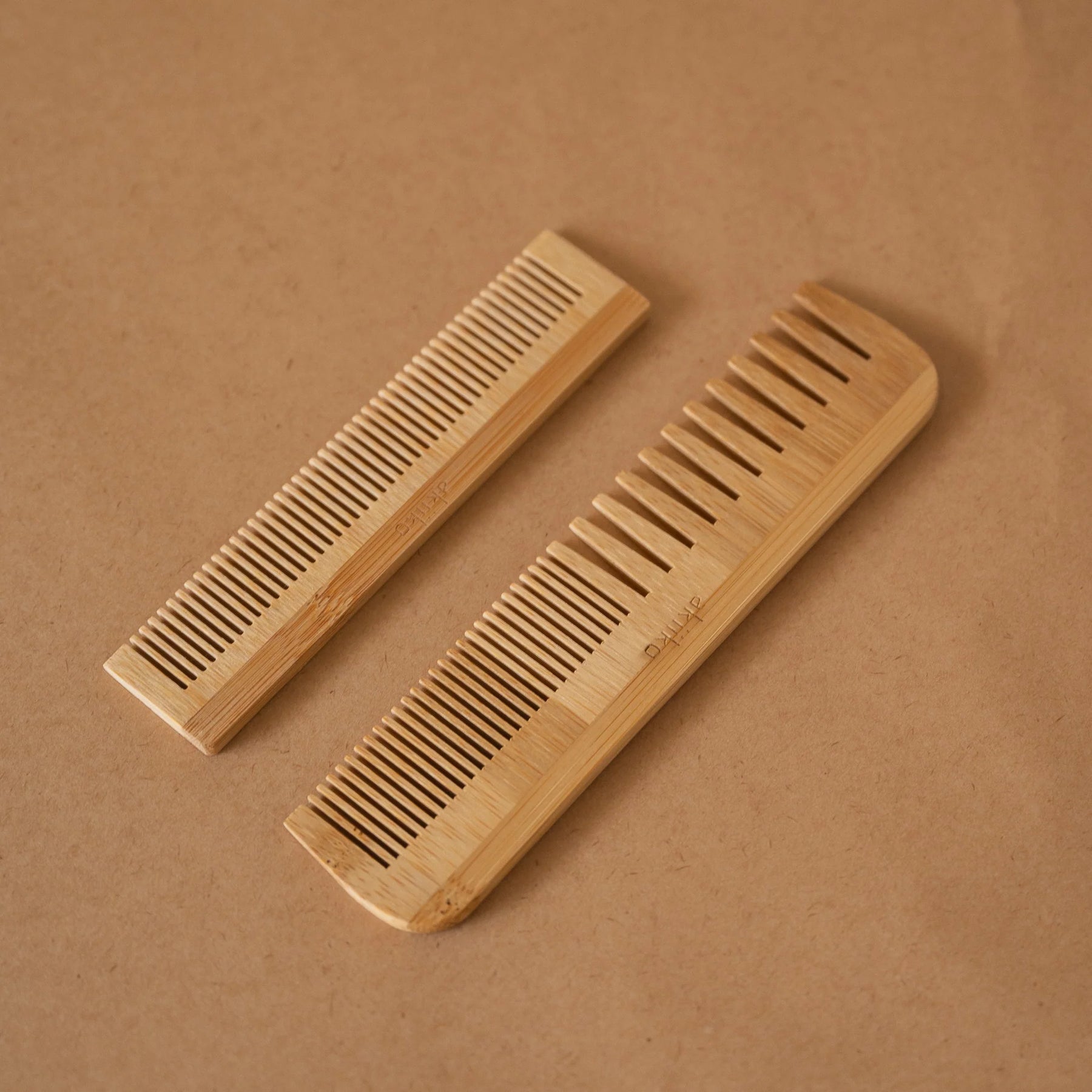 Embrace eco-friendly grooming with our Bamboo Comb Set, featuring a pocket comb and a regular comb for all your styling needs. Crafted from bamboo, both combs are designed to gently detangle and smooth hair without causing breakage .