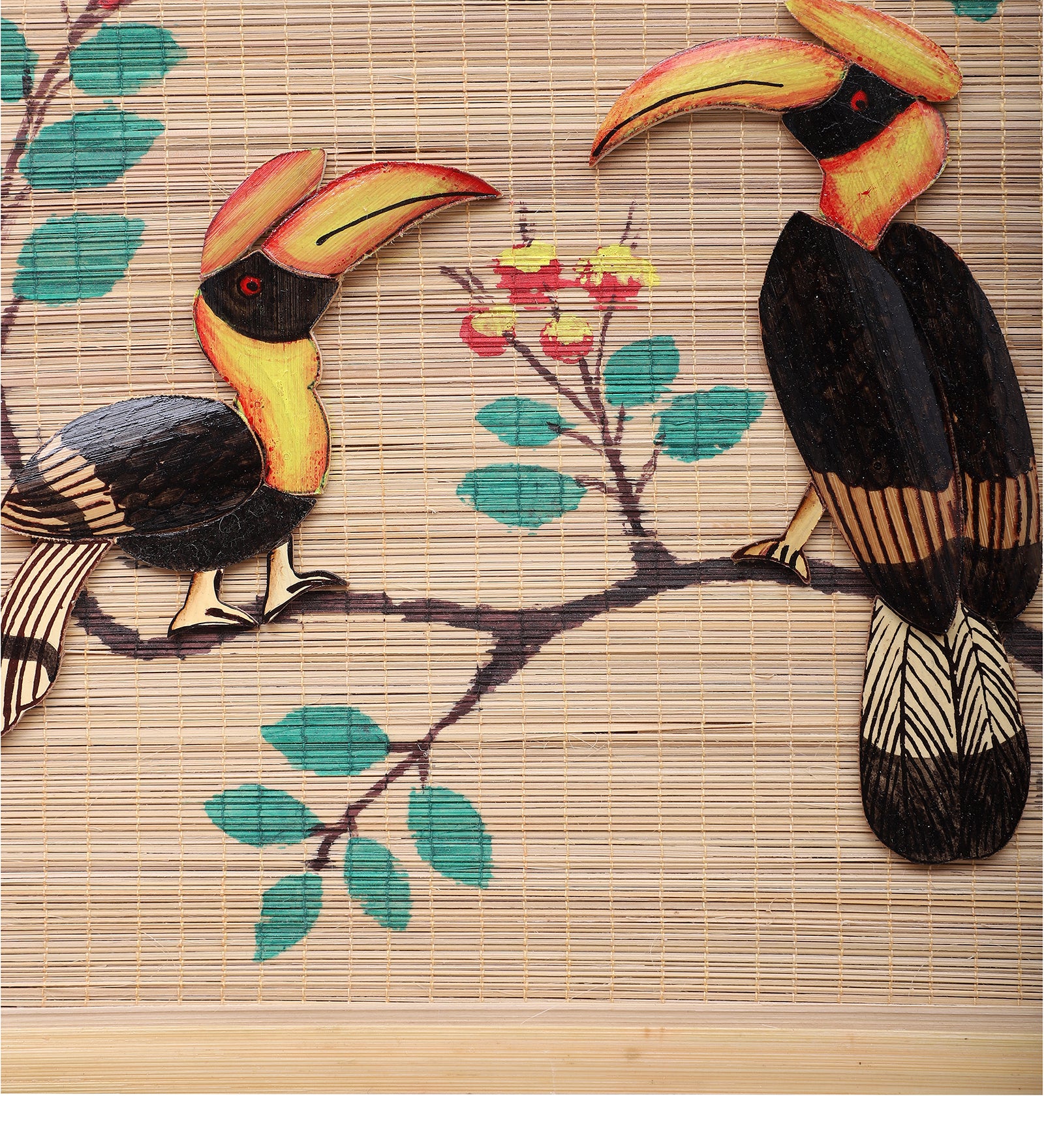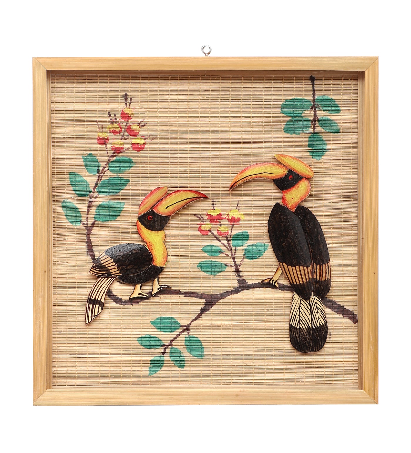SILPAKARMAN Bamboo Wall Hanging - Pair of Hornbill - Small (30 x 30 cm)