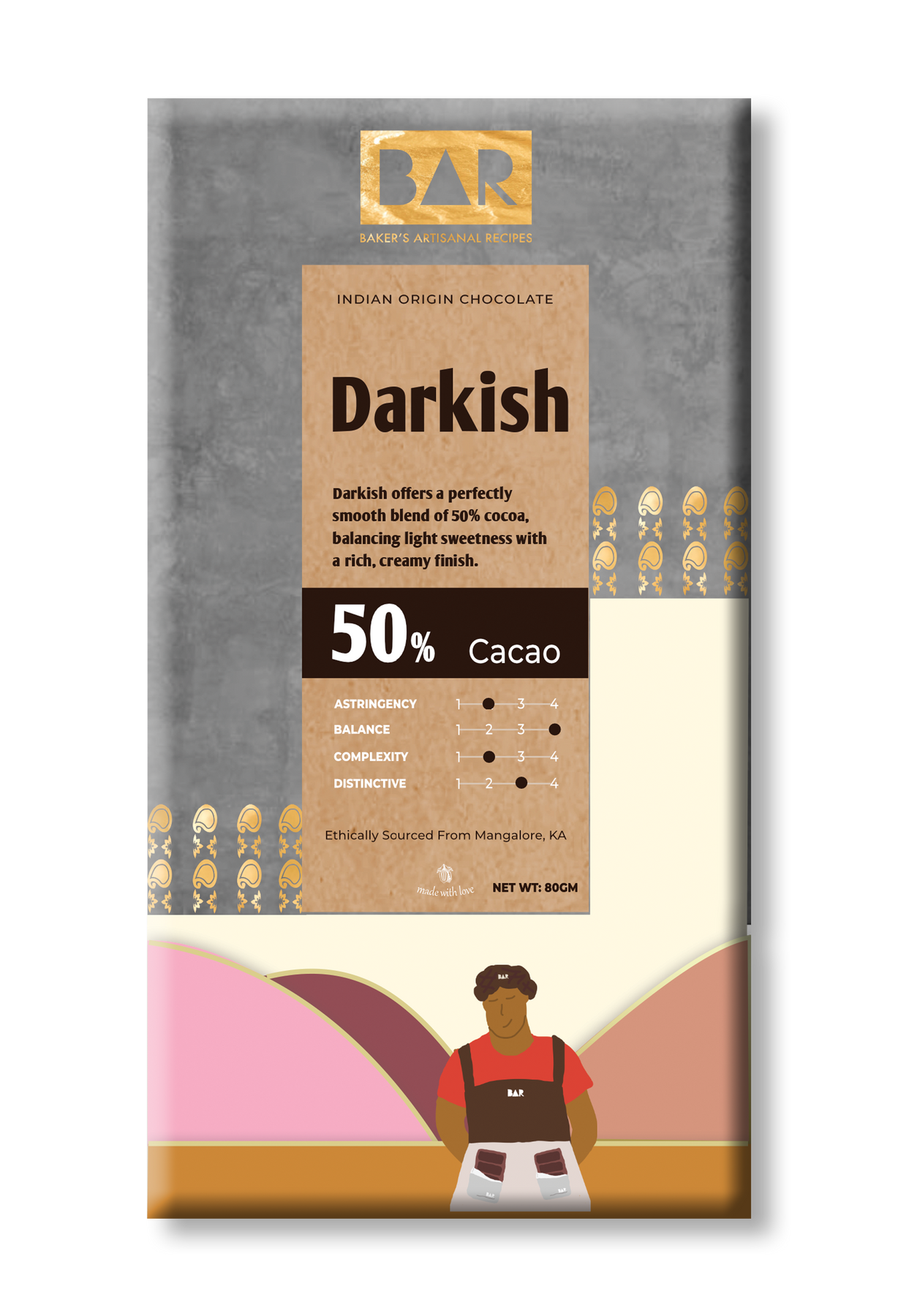 BAR Darkish 50% – Mangalore Origin Dark Chocolate – 80 gm