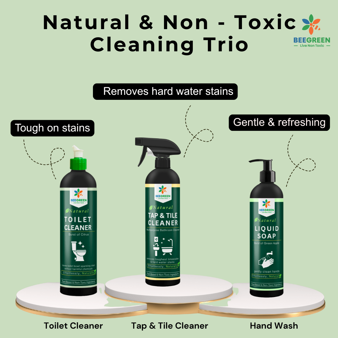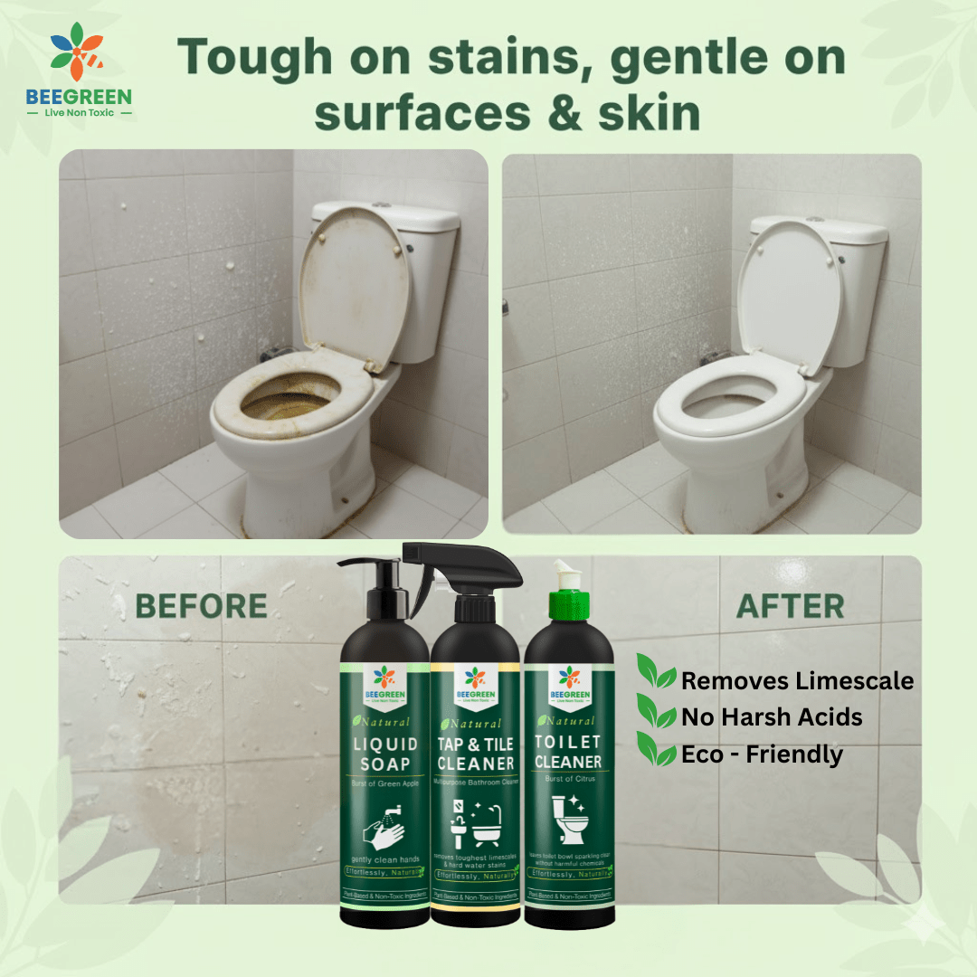 BeeGreen Bathroom Cleaning Kit | Natural Tap & Tile Cleaner, Toilet Cleaner & Hand Wash | Non-Toxic, Plant-Based & Eco-Friendly | Gentle on Skin, Tough on Stains | Bathroom Essentials Combo
