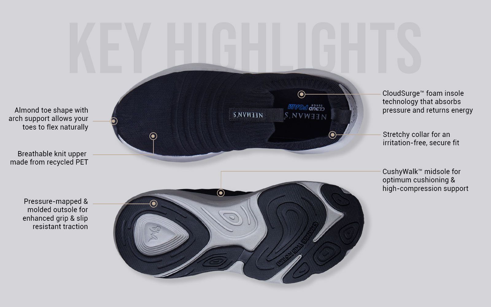 Still snoozing your morning alarms? Dragging yourself to walks like it’s an early morning meeting? It’s not you; it’s your shoes. Meet the Begin Walk ‘Breeze’. With a breathable knit upper, energy-returning insole, responsive cushioning & compression midsole, and a pressure-mapped outsole, these shoes offer you the most comfortable walking experience, all while managing the stiffness and stress on your joints & muscles.