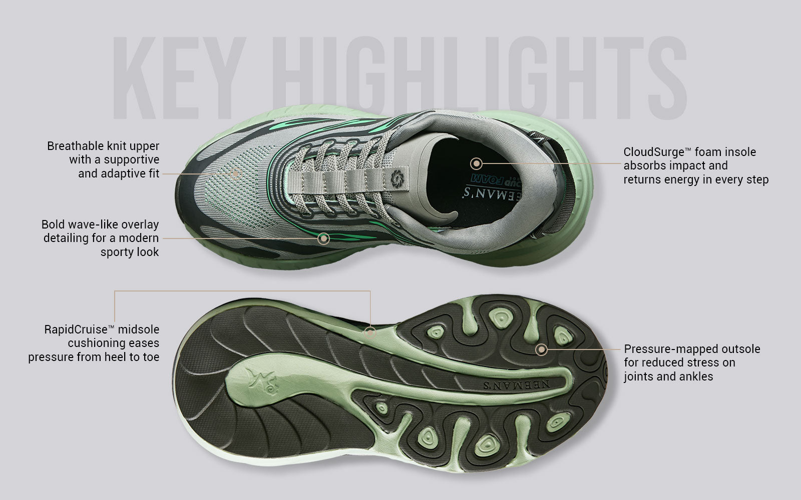 Walk? Sure. But these were made to do much more. With dual-tech RapidCruise™ & CloudSurge™ cushioning, pressure-mapped sole, and bold details that add a sporty edge to every step, the Begin Walk Flames are your daily ignition switch. Comfort’s just the base here! The real superpower is the energy they add to your stride.