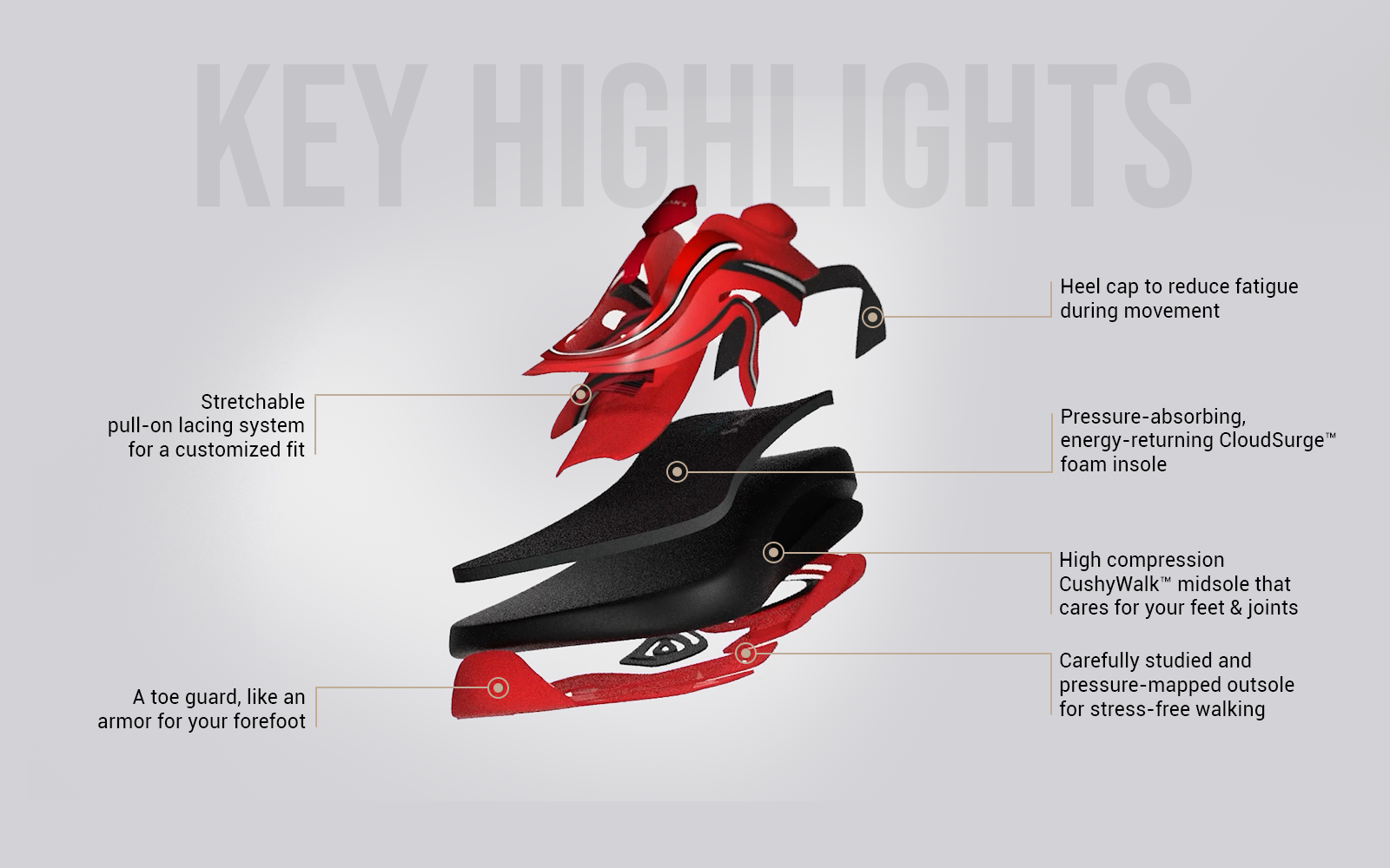 Your search for the most comfortable walking shoes ends here - Introducing Neeman’s Begin Walk ‘Unwind’! Now, walk on engineered clouds for your feet, courtesy of our ‘CloudSurge™ foam’ insole technology that absorbs pressure & returns energy, ‘CushyWalk™’ midsole technology that cushions your feet & reduces fatigue on joints, and a pressure-mapped outsole for movement that is stress-free.