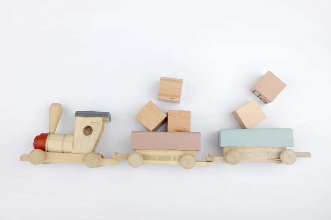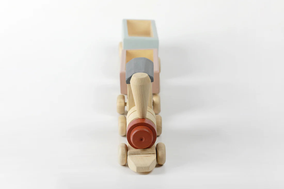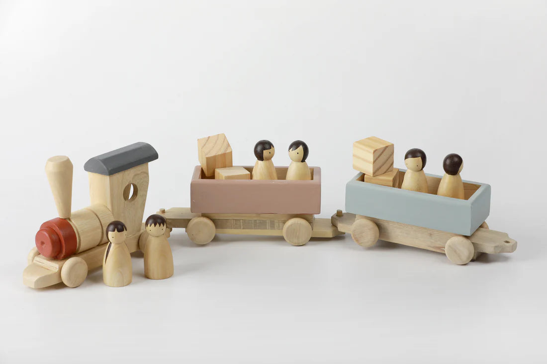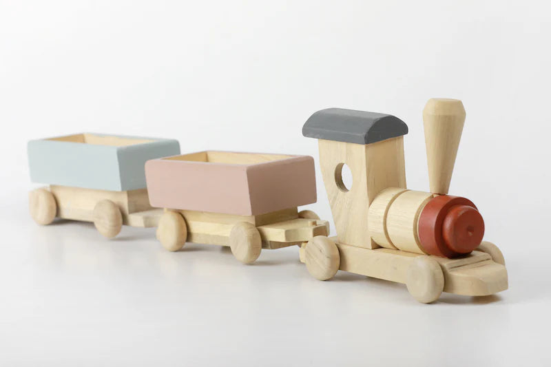 Our wooden Carrier train is handcrafted in Ivorywood and handpainted with non-toxic paint