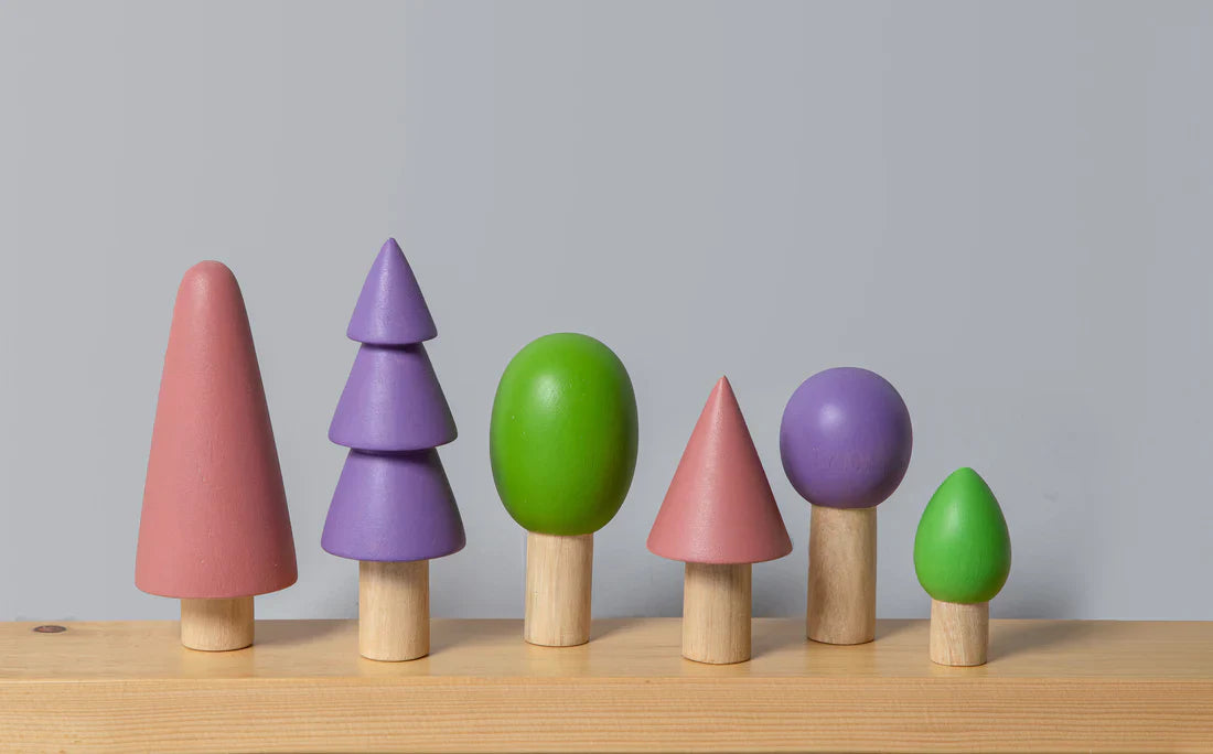 This vibrant forest set will transform any small world play scene or natural play space. Each tree has been handcrafted to echo the different kinds of trees and colors you would see in a lush forest.