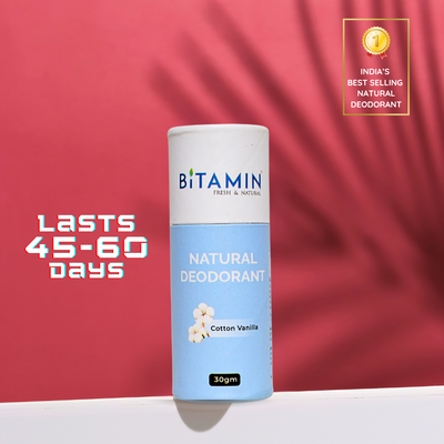 Cotton Vanilla 30g & Cotton Vanilla teens natural deodorant 15g is a best combination for women & daughter (Fragrance Intensity - Medium)