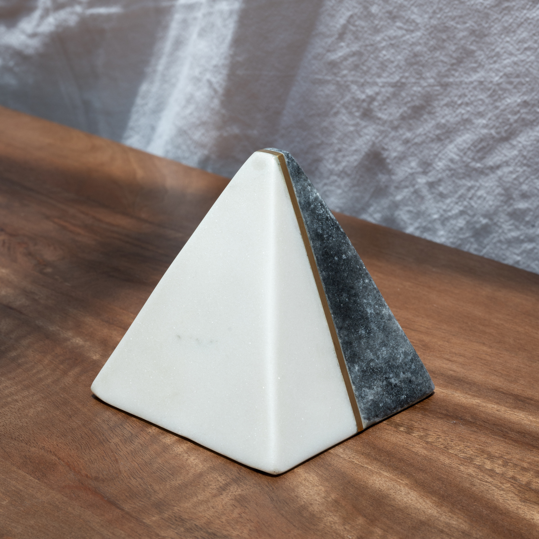 Muun Home Black & White Marble Pyramid w/brass Inlay