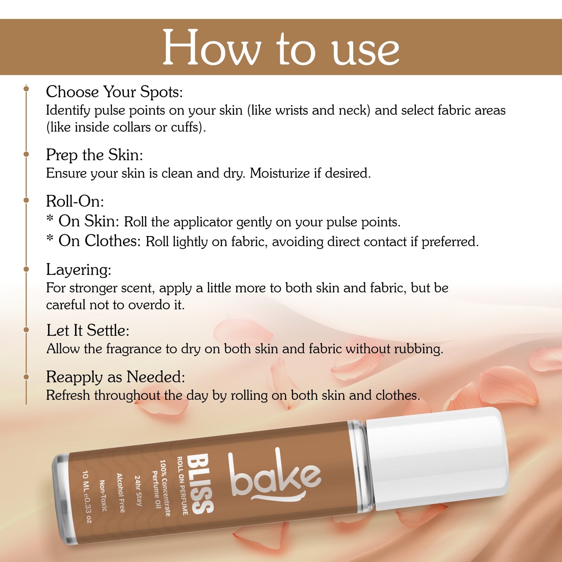 Experience the luxury of long-lasting fragrance with BAKE Bliss 100% Concentrated Perfume Oil Roll-On, formulated with an intense and pure scent. Free from alcohol, this roll-on is gentle on the skin, ensuring a non-drying, irritation-free experience. The warm and sensual blend of vanilla, woody sandalwood, and delicate jasmine creates a captivating aroma that soothes the senses and lingers for 24 hours. Designed for both men and women, this unisex perfume is perfect for daily wear, special occasions, or on-the-go freshness. The compact 10ml bottle makes it easy to carry, allowing you to reapply anytime, anywhere for a burst of fragrance. Whether you prefer a subtle everyday scent or a signature fragrance that lasts all day, BAKE Bliss Vanilla delivers a timeless, enchanting experience with every roll-on application.