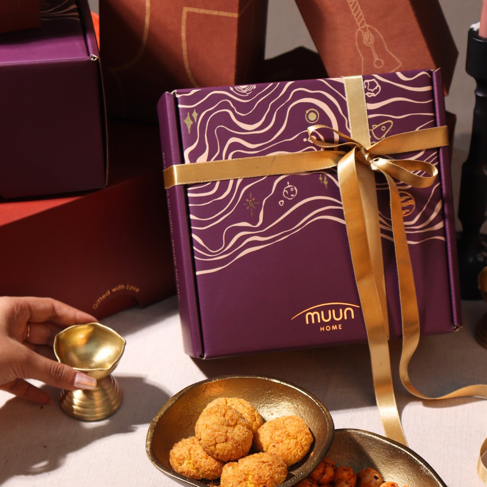 This Diya Pair Gift set includes a gift box and