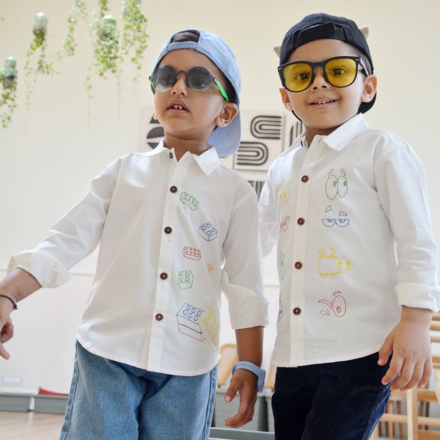 Building Blocks Embroidered Unisex Shirt - White - Suspire