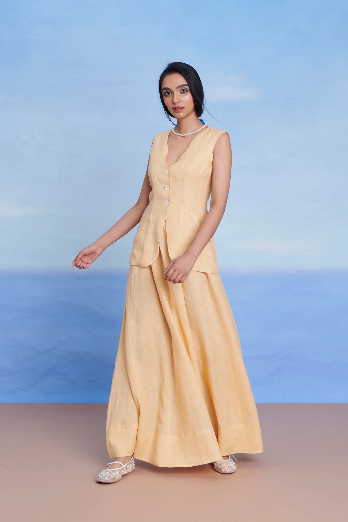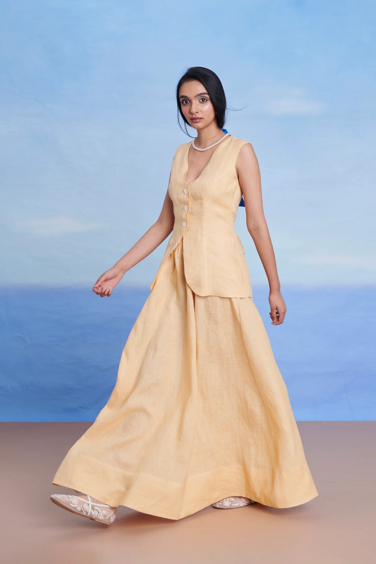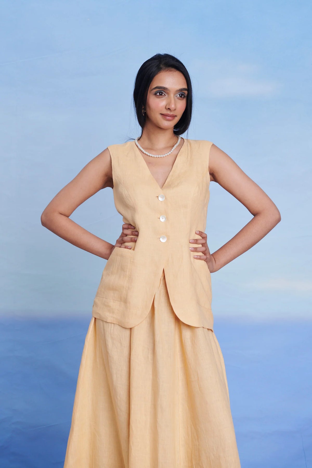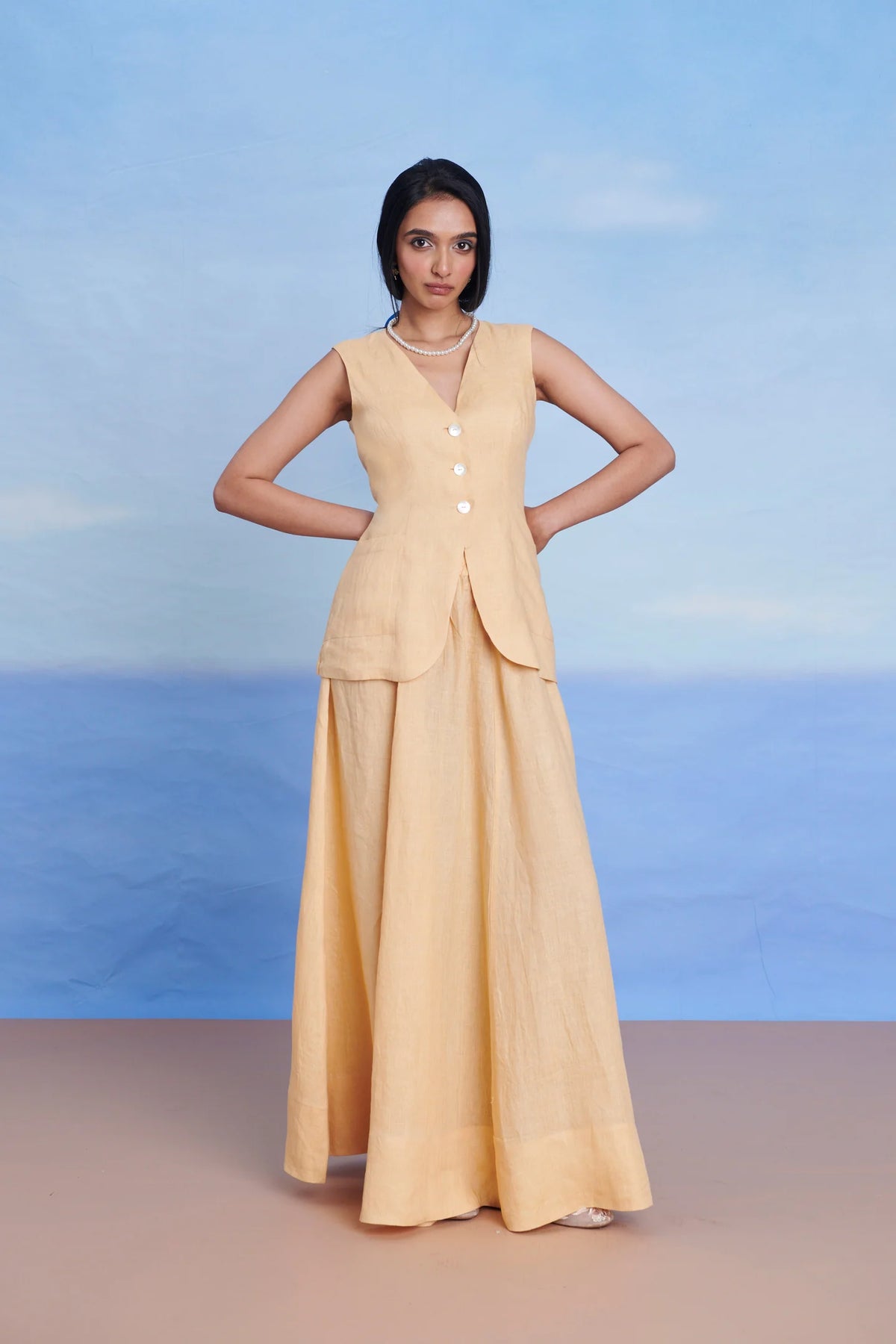 Butterscotch Linen V-neck Vest And Maxi Skirt Set