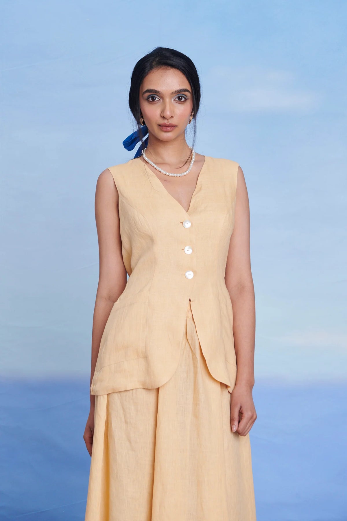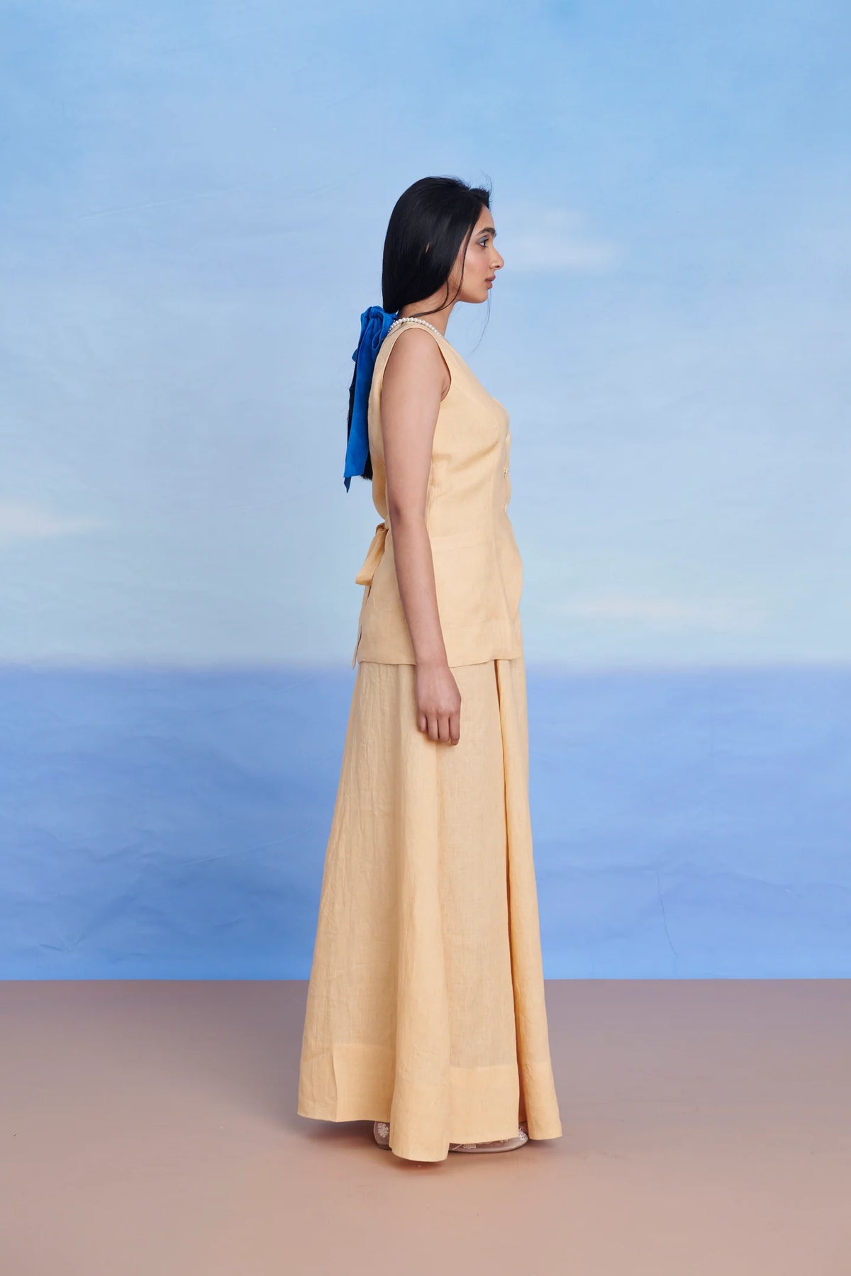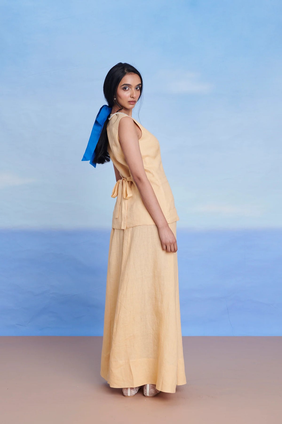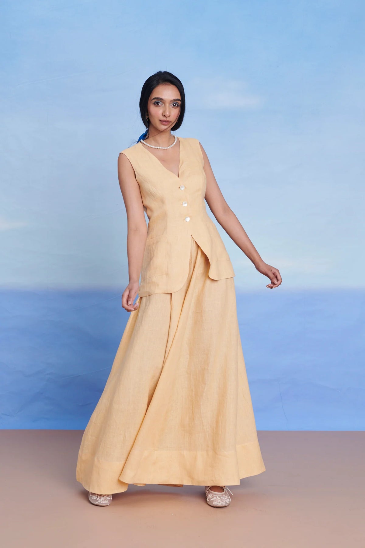 Butterscotch Linen V-neck Vest And Maxi Skirt Set