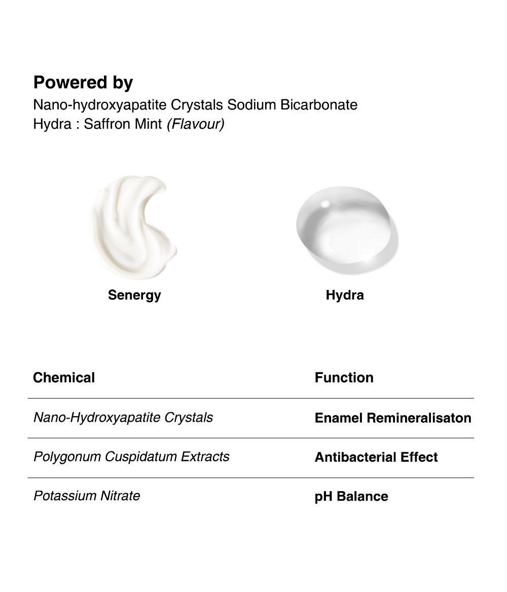 Gentle yet effective, the Sensitivity Combo is made for anyone dealing with tooth or gum sensitivity. Our Synergy Sensitive Toothpaste, powered by 10% Nano-Hydroxyapatite, works to rebuild enamel and reduce discomfort. The ultra-soft Eden Bamboo Toothbrush is kind on gums, while Hydra Sensitivity Mouthwash calms and hydrates. A full-circle routine for long-lasting relief—without the sting.